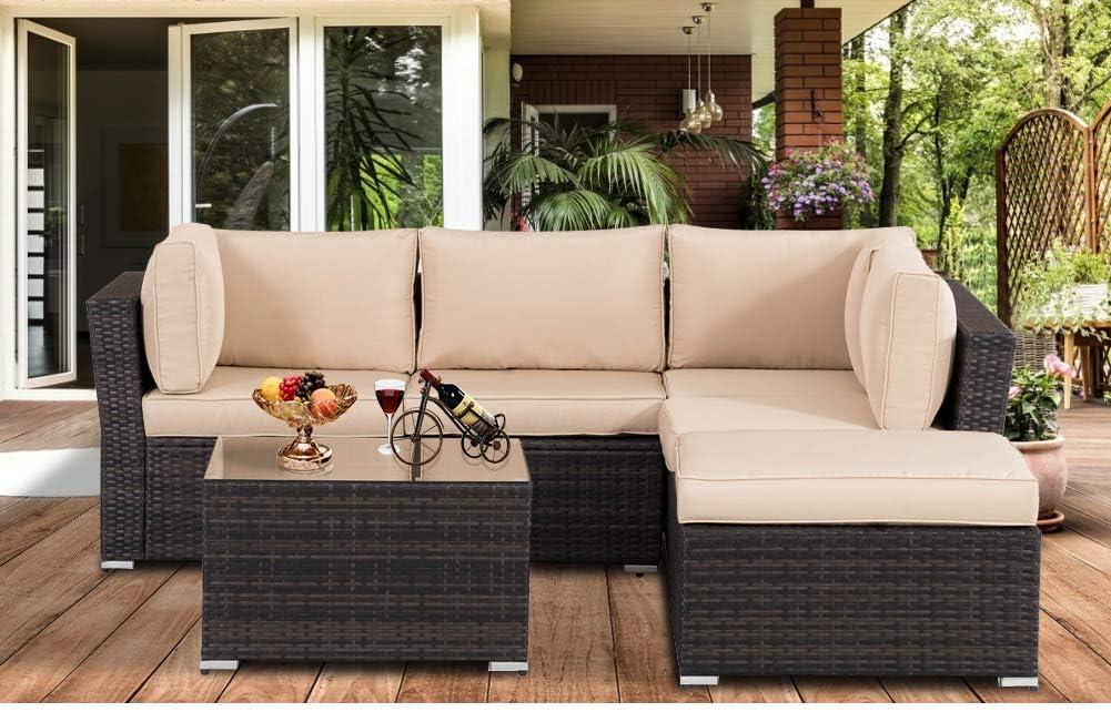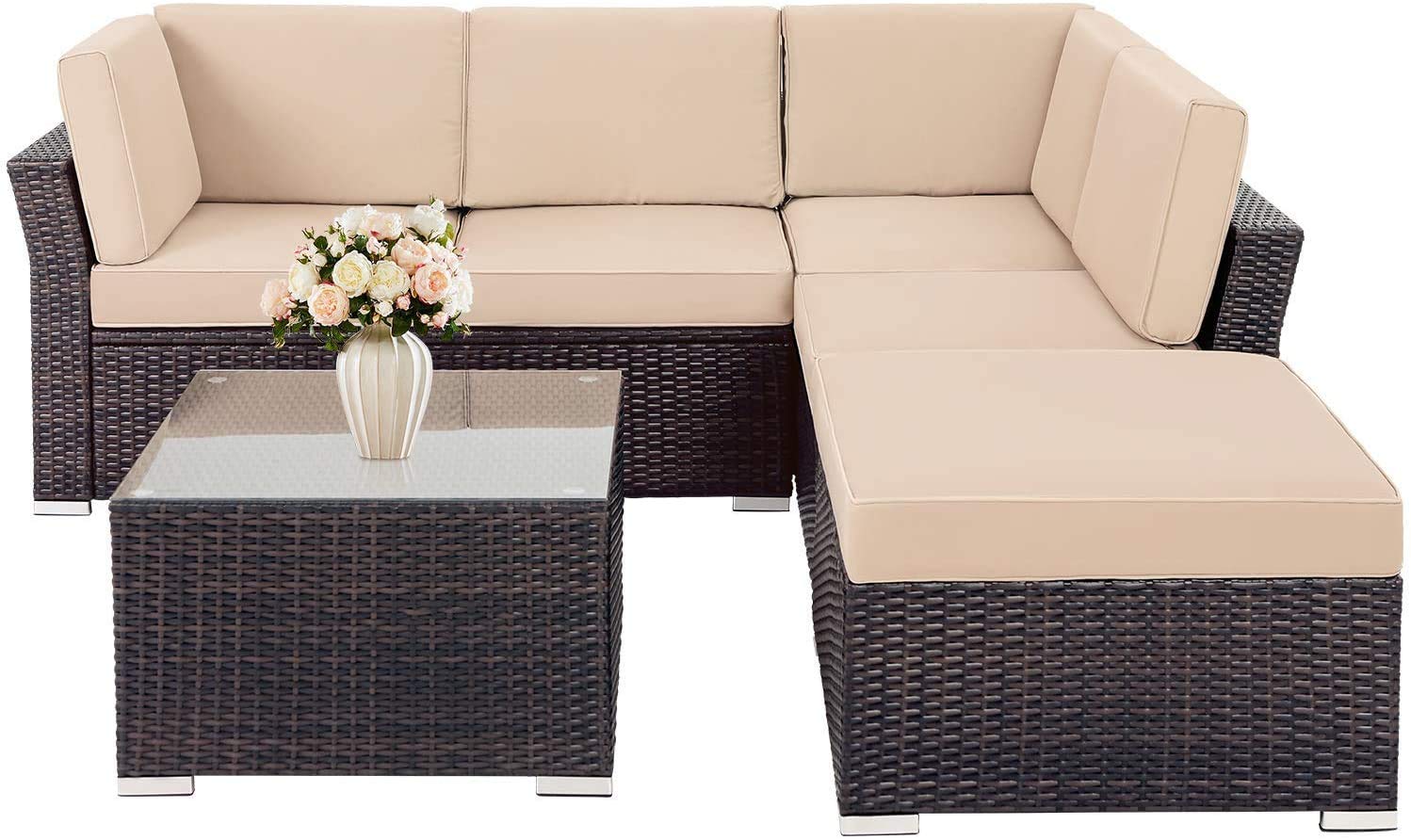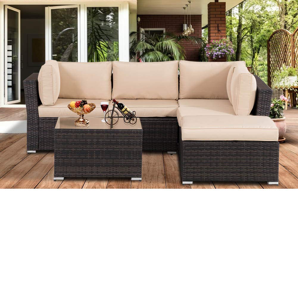 - Upgrated Comfortable - This 4-piece patio set comes with 2 loveseats, 1 ottoman and 1 table, which can seat 5-6 people comfortably.
