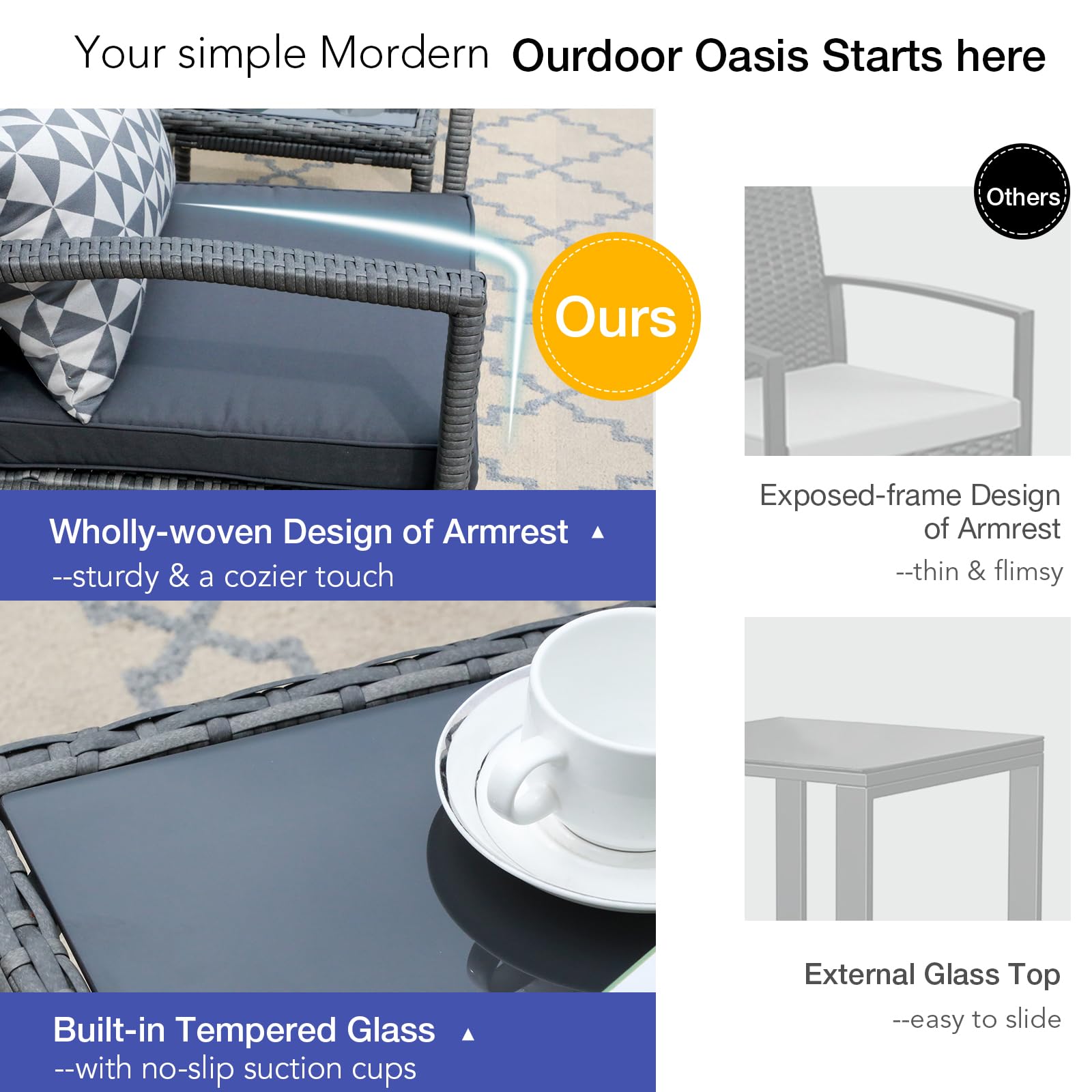 3 Pieces Outdoor Patio Furniture Set, Wicker Conversation Set, Rattan Chair Set