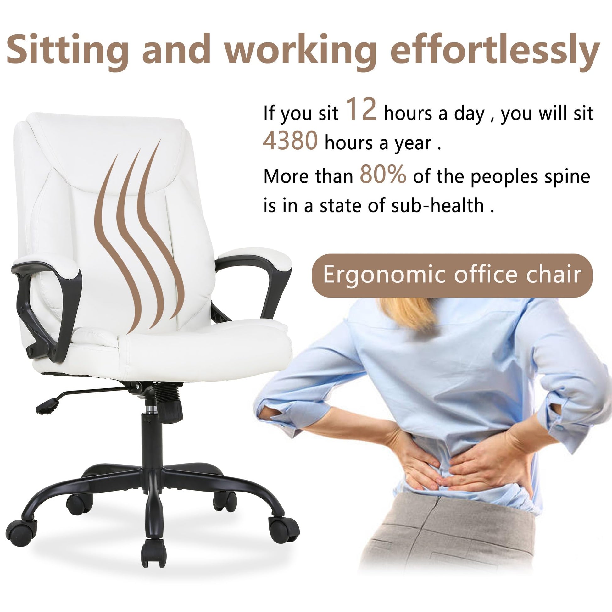 Home Office Chair Ergonomic PU Leather Desk Chair Mid Back, Swivel, and Executive