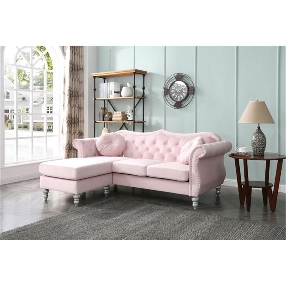 Transitional Velvet Back Tufted Sofa Chaise in Pink