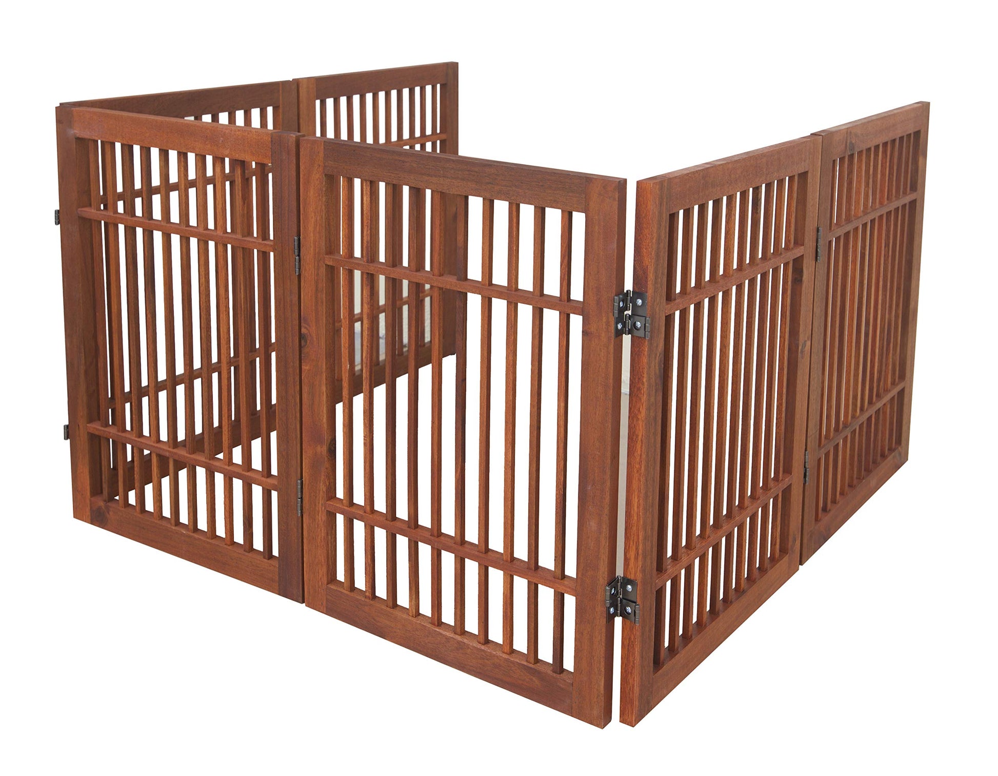 - This is a freestanding wooden pet dog gate with 2-way hinges. Our dog gates for the house can be used in several configurations.