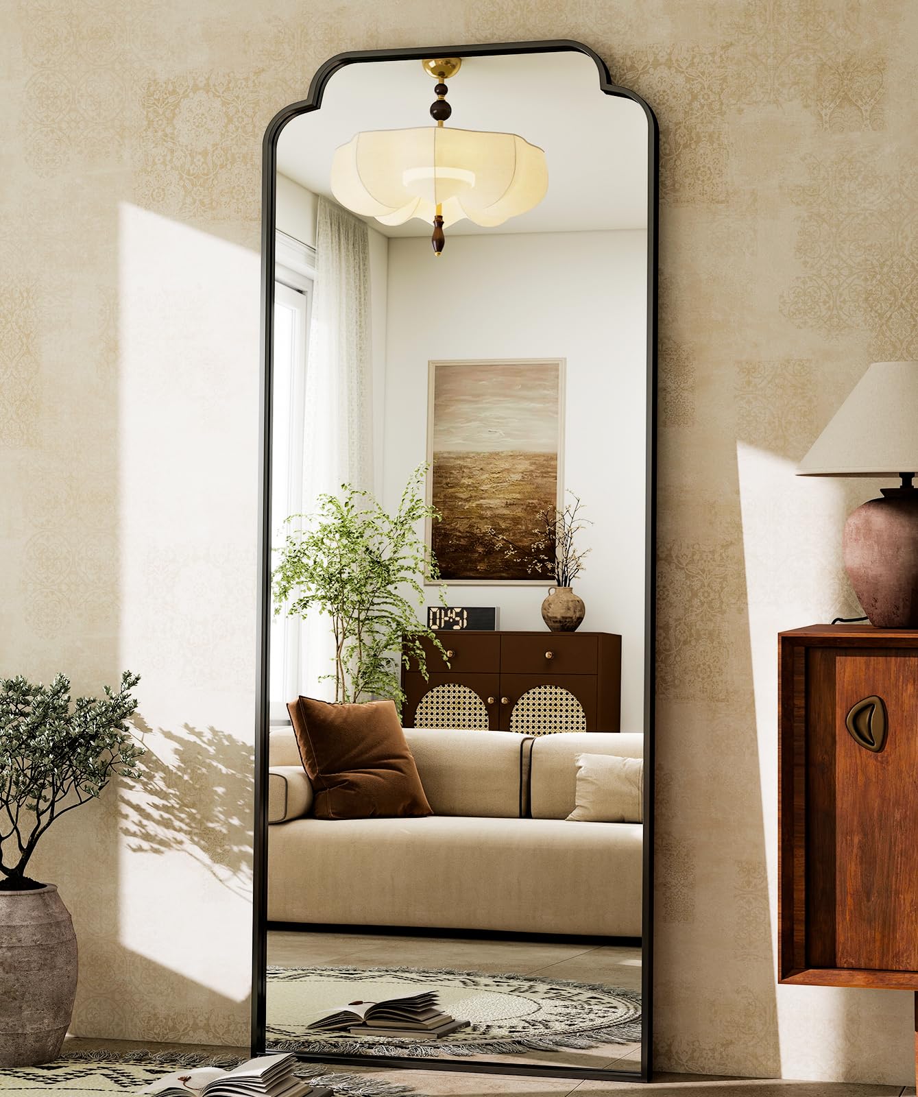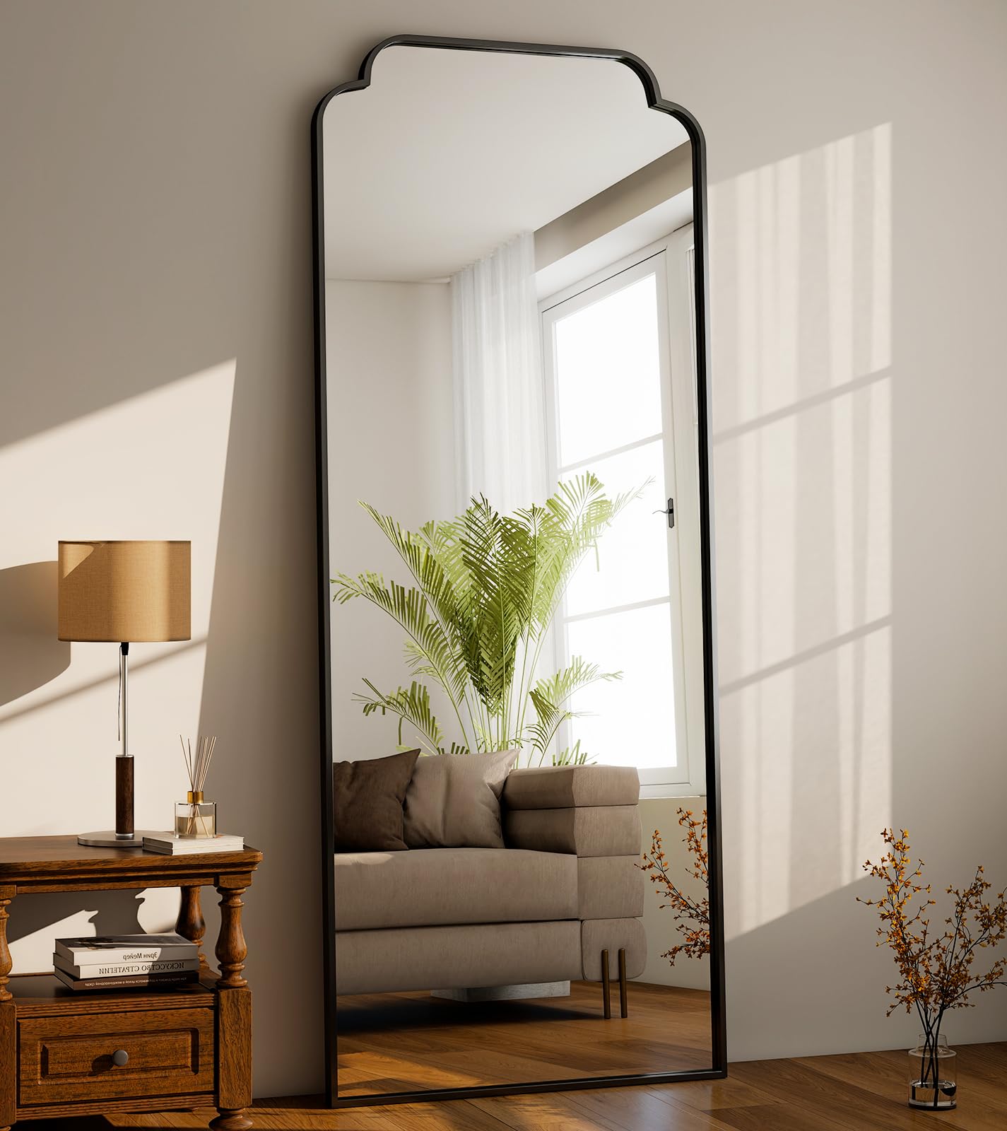 Elevate your space with this stunning petal arched full-length mirror, featuring a sleek modern aluminum frame in sophisticated black. Perfect for creating the illusion of more space while adding an elegant architectural element to any room.