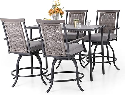 - Patio Bar Set for 4-6 :The L67" * W35.5" tabletop can accommodate 4-6 people, and paired with 24" high bar stool, it provides a relaxing and pleasant space