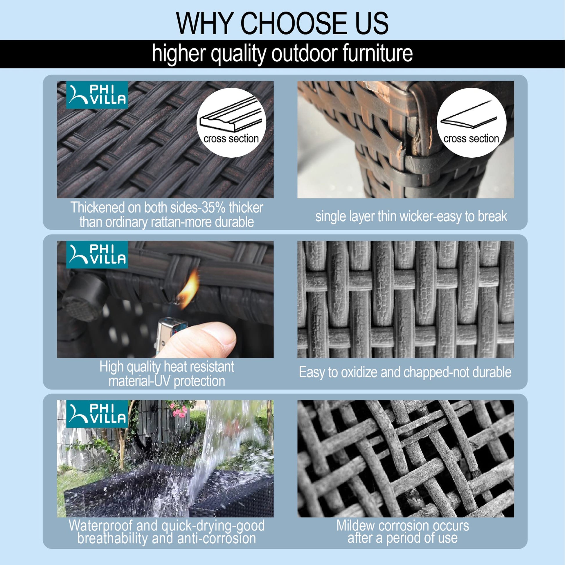 - Premium Construction: patio furniture set with a fire pit table offers a generous seating capacity for up to 6 people, creating a cozy environment for bonfires and warmth. Crafted from durable all-weather handwoven rattan wicker and a rust-proof steel frame, this garden sofa set ensures longevity and resilience against the elements, providing years of enjoyment.