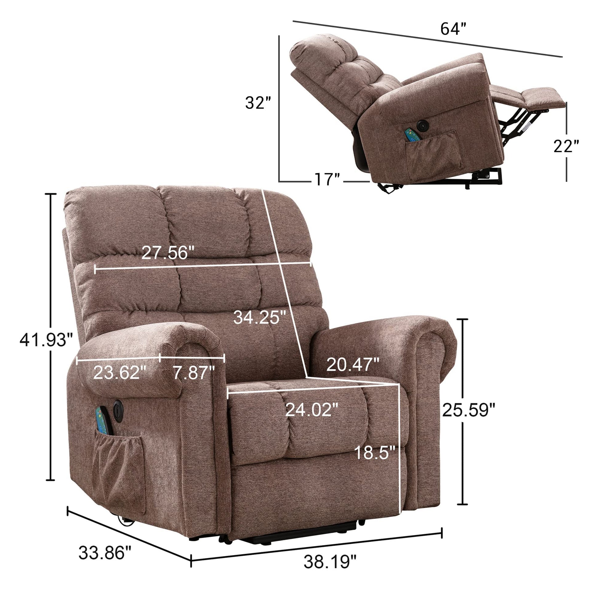 - Extended Backrest & Wider Seat: By analyzing the physical characteristics of most American seniors, we designed this extra wide power lift recliner. The backrest length of 34.25 inches is suitable for most people. The width of seat 24.02 inches can provide perfect support for your entire lumbar and hips. Give your parents this thoughtful and practical gift!