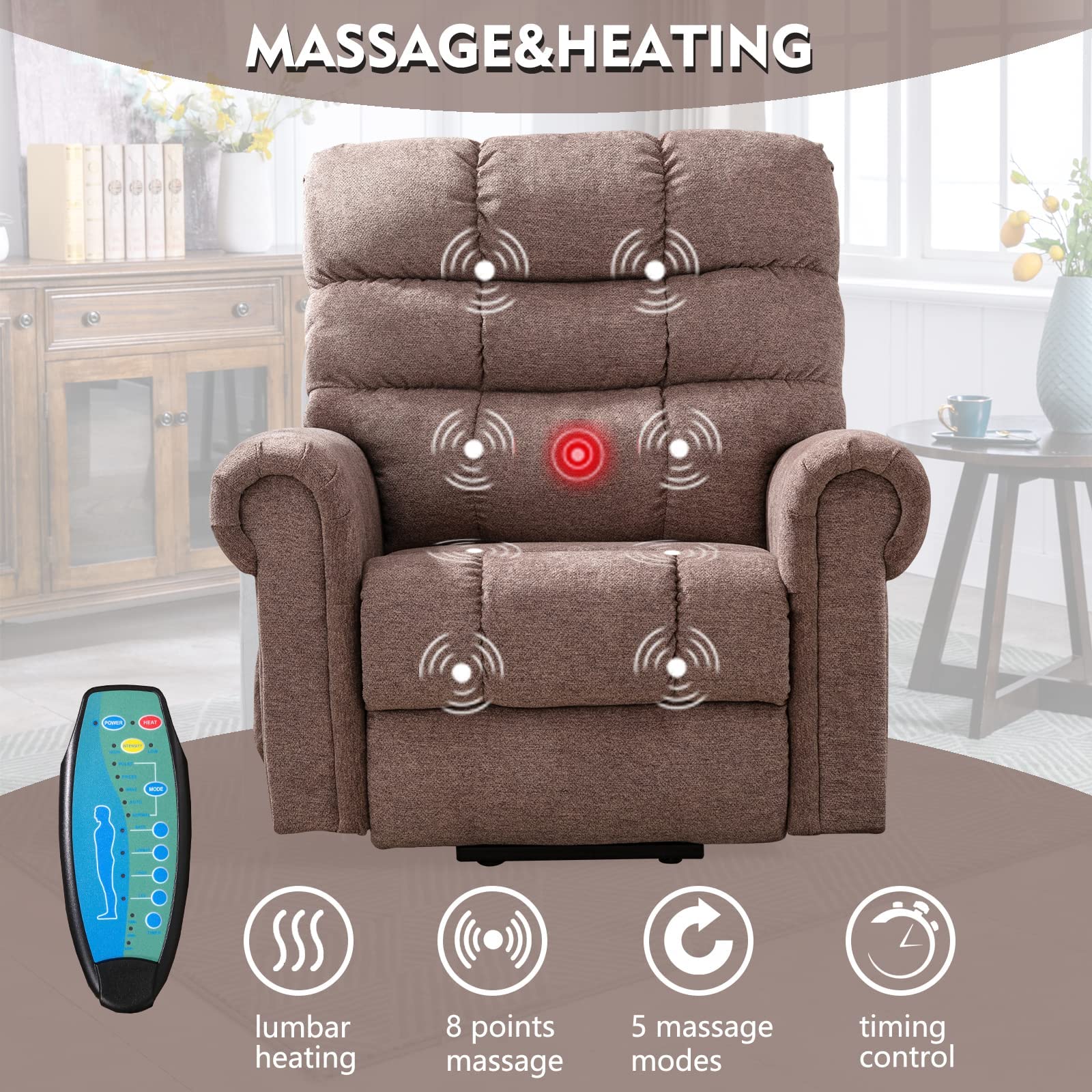 - 8 Point Massage & Lumbar Heating: Our recliner is equipped with a wire remote control. It with 8 Point massage and 5 adjustment modes, each massage point can be operated individually. You can have a full body massage or to relax the back, lumbar, thighs and legs. There is timer function in 15/30/60 minutes which is convenient for you to set massaging time. Add 2 lumbar heat points to promote blood circulation throughout your body, providing a full body relaxation!