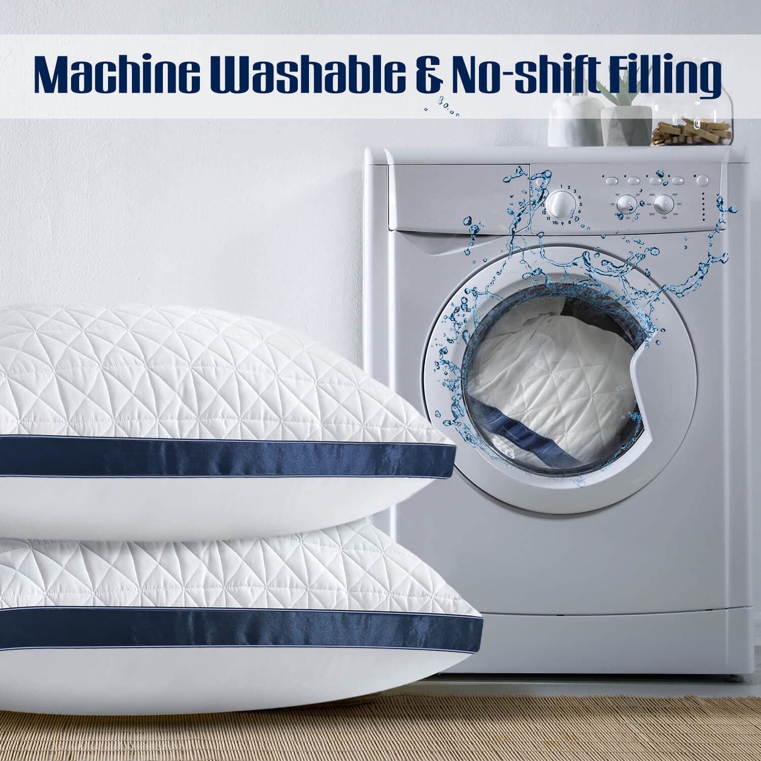 - EASY HOME CARE - Our pillows are machine washable with tumble dry low, no-shift filling after washing, no clumping and always like new. Queen size measures 19 * 28 inch, fit for standard pillow case. It come with vacuum-sealed for shipping, once opened it will start to fluff up, please leave 48 - 72 hours for the pillows to get to full thickness before using them. Fluff the pillow regularly will retain its shape for long time use.