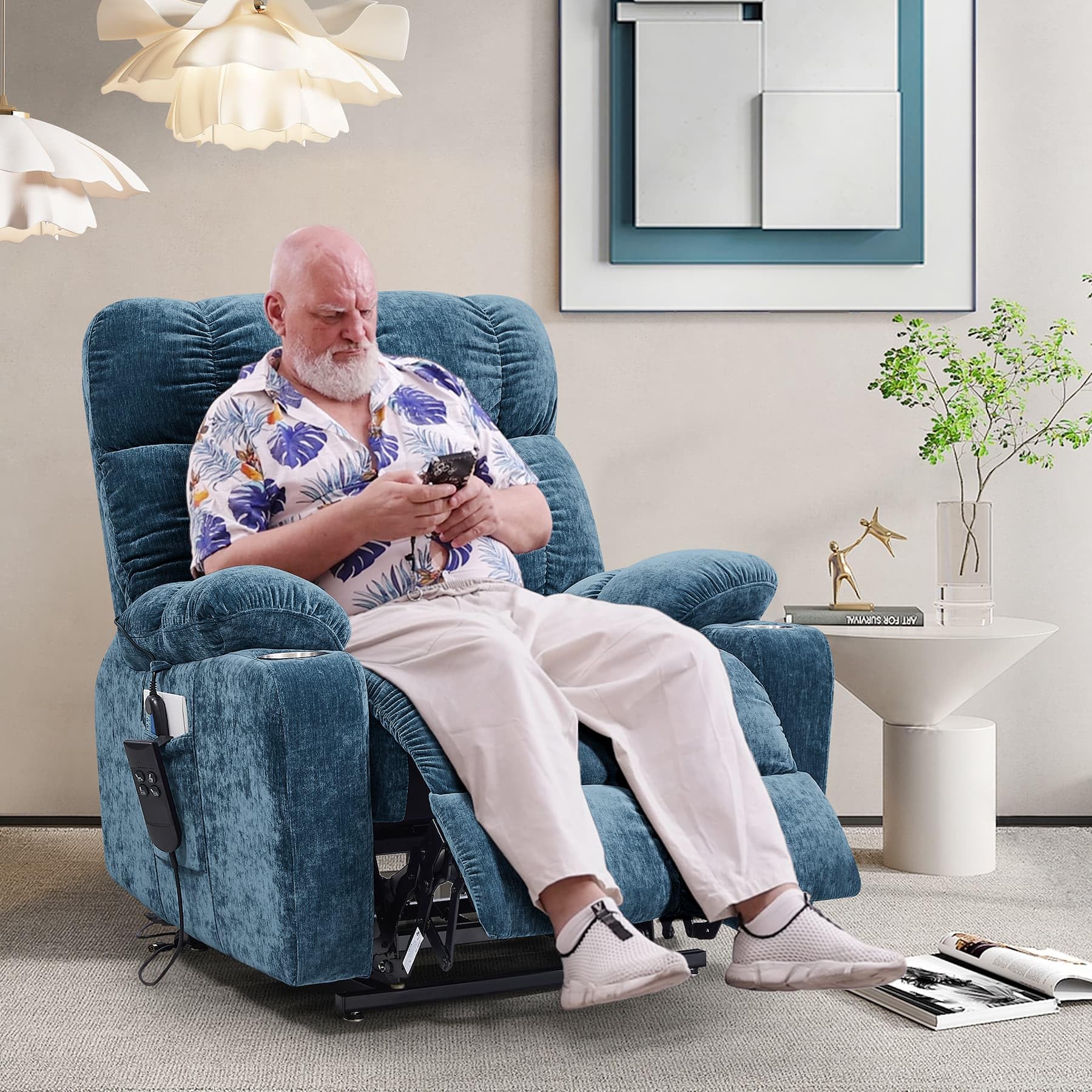 Sleeping Lift Recliner Chair with Heat Vabriation Massage for Elderly,Infinite Position Soft Fabric Power Electric Recliner Sofa Chair with Dual OKIN Motor for Living Room Blue Fabric