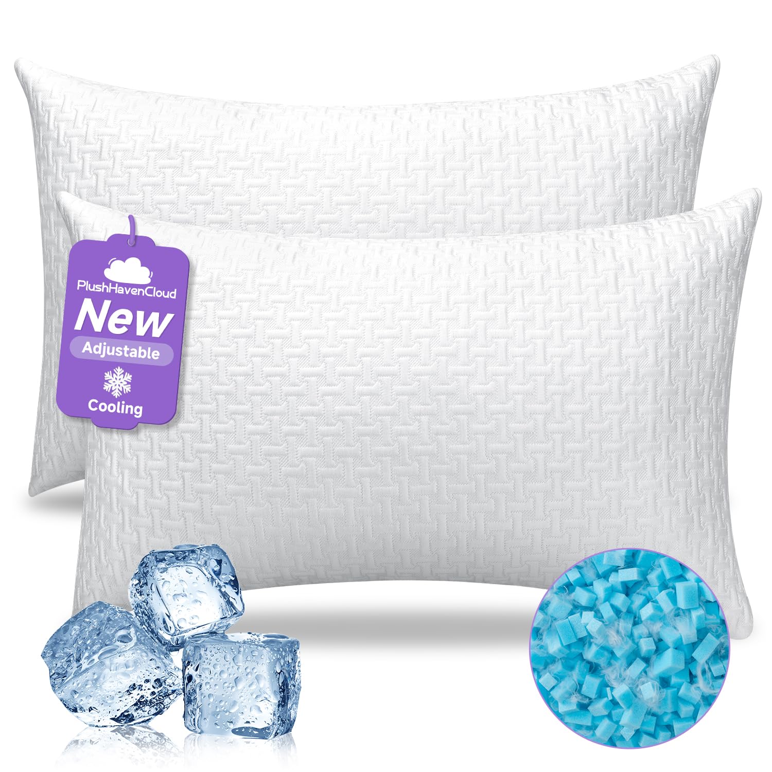 New Adjustable Pillows Queen Size Set of 2 - Cooling Shredded Memory Foam