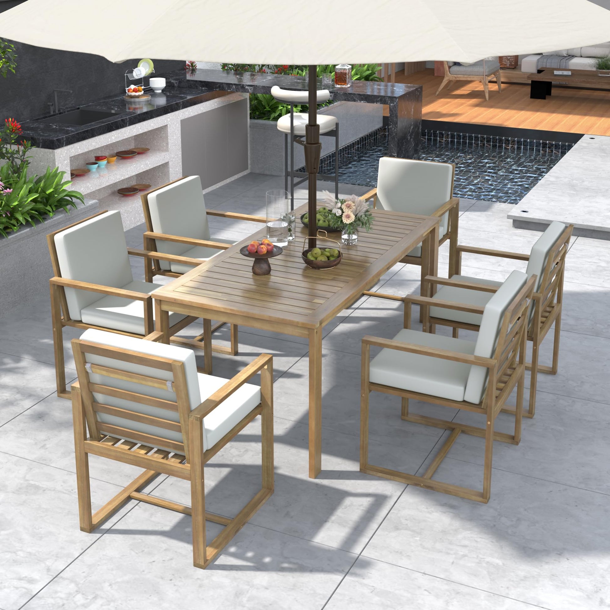 - [High-quality Wood Construction]Made from Acacia wood, this outdoor dining set is not only robust but also boasts high strength and crack resistance, ensuring longevity and consistent performance over time.
