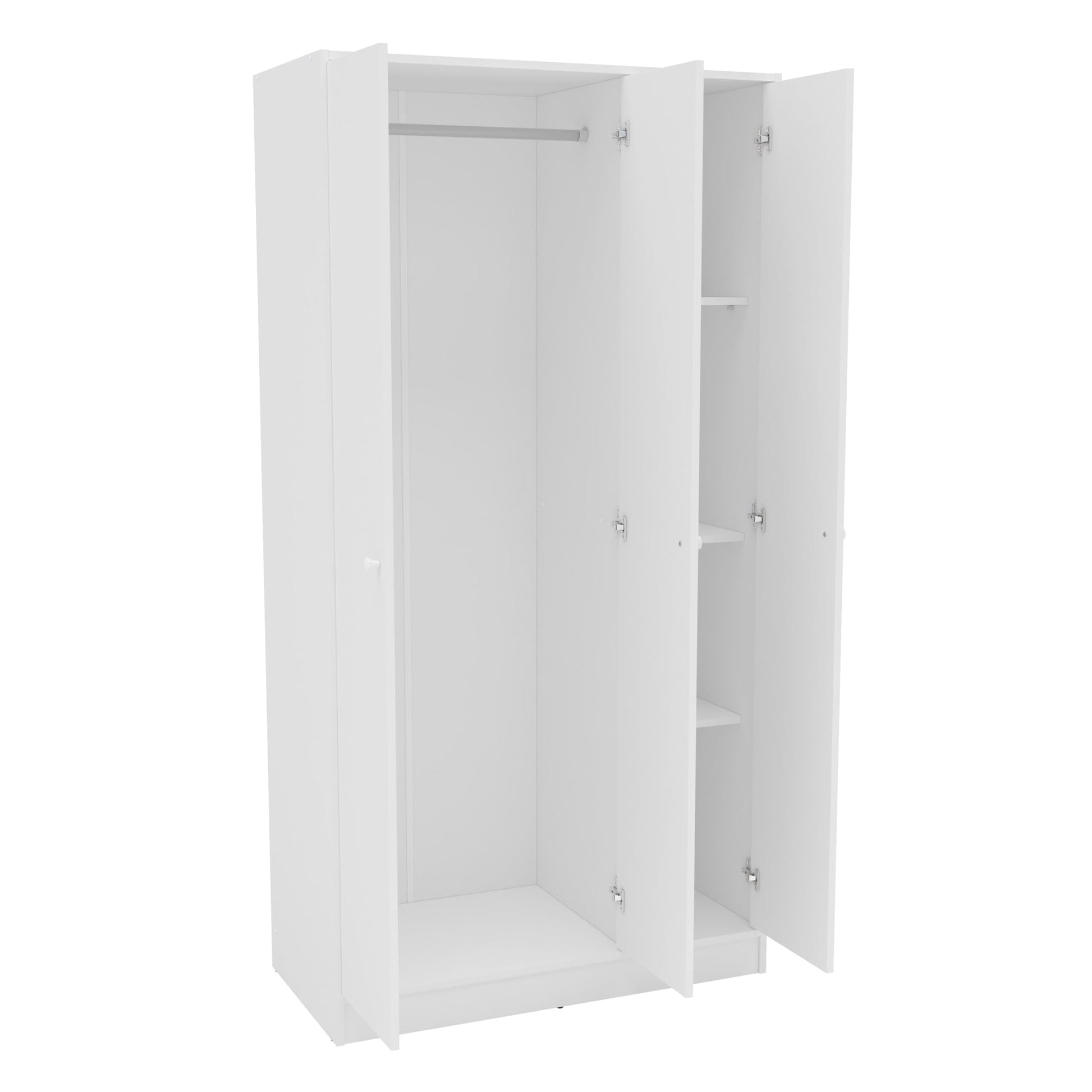 - Experience the perfect blend of modern design and functionality with the Polifurniture Denmark 3 Door Wardrobe. This stunning wardrobe is available in three finishes and boasts a durable melamine coating that is resistant to scratches and stains. With two cabinets, multiple shelves, and a hanging rod, this wardrobe offers ample space for all your storage needs.Features: Durable engineered wood construction, 3 doors (2 open to 1 cabinet; 1 to another)