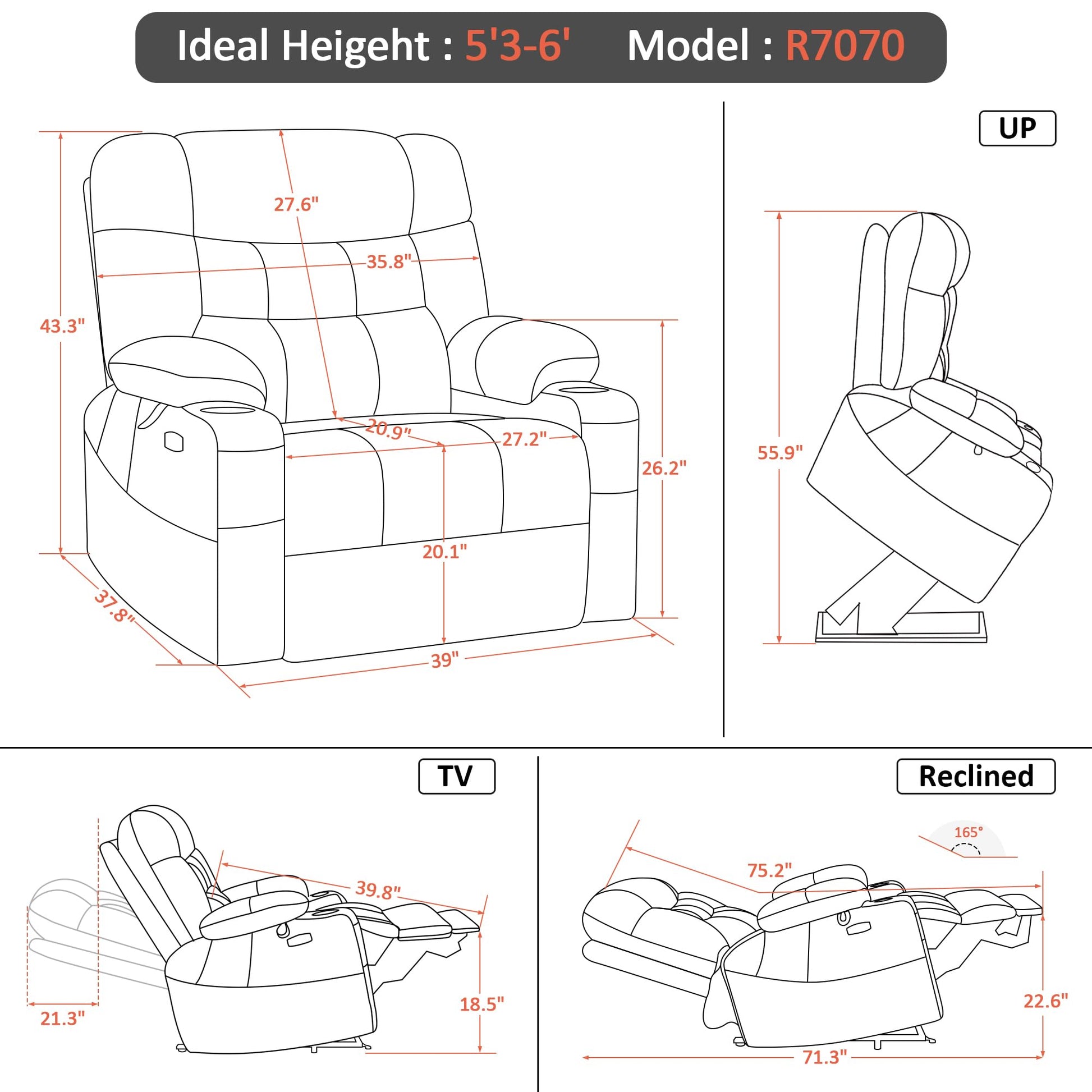 - Dual Motor Recline: Adjust the backrest and footrest independently for lift, TV, and flat positions up to 165° recline angle.