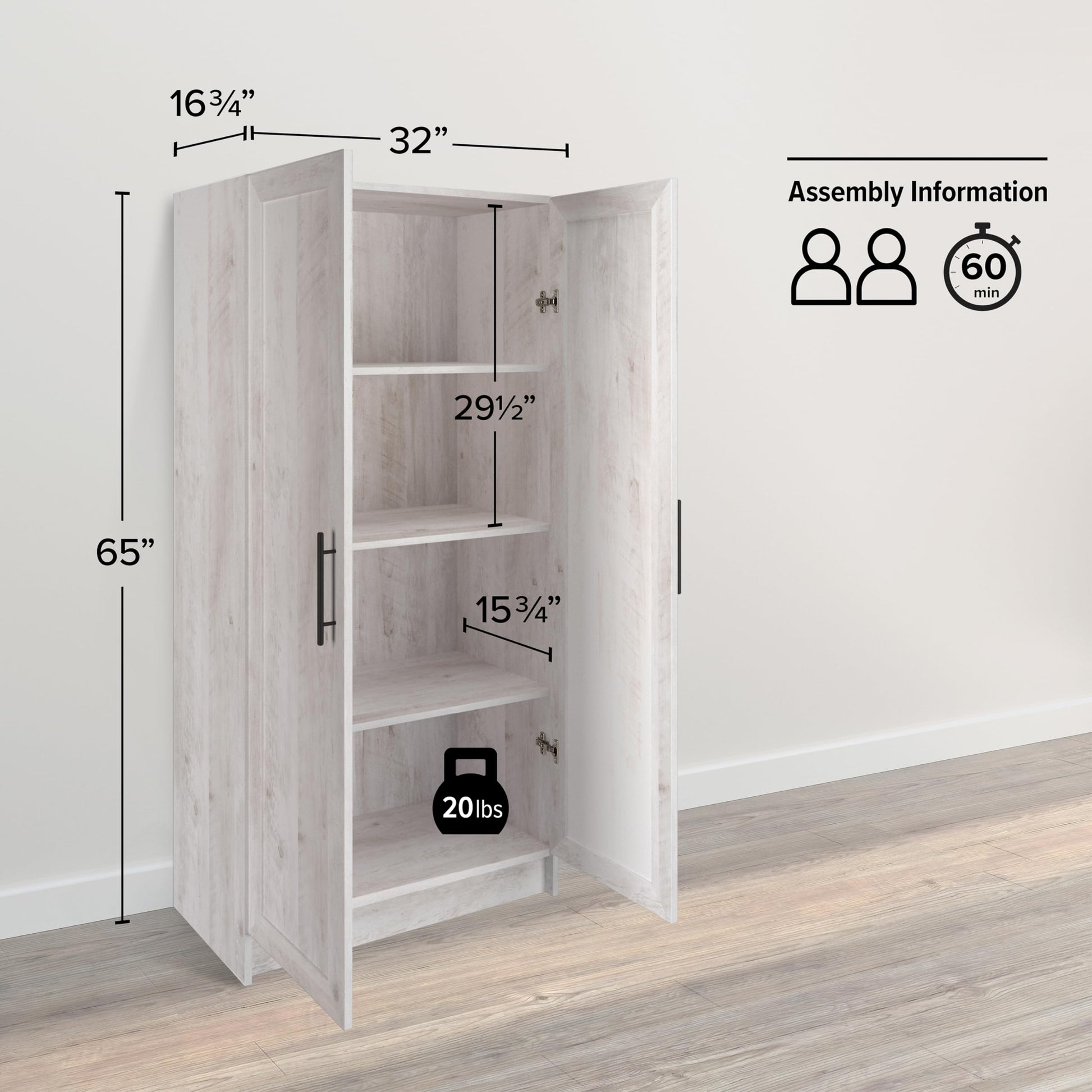 Elite Storage Cabinet, 16.75" D x 32" W x 65" H, Washed White