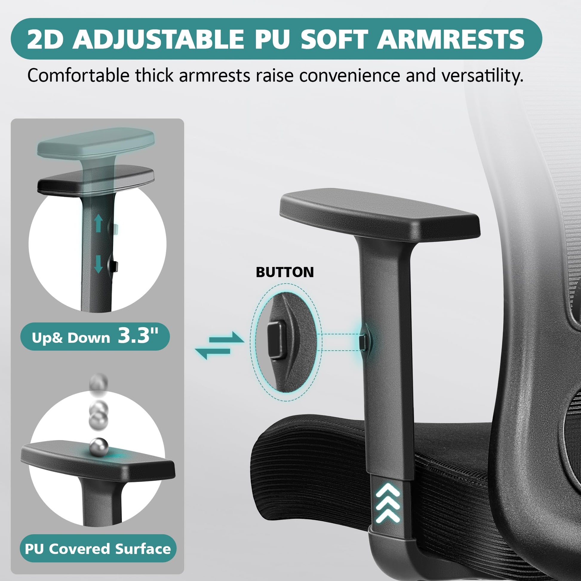 - Breathable Mesh: The ergonomic office chair‘s mesh backrest allows for improved air circulation, while the high-density foam cushion prevents sagging and provides a comfortable seating experience. You can work for extended periods without feeling sweaty, as the chair keeps you cool.