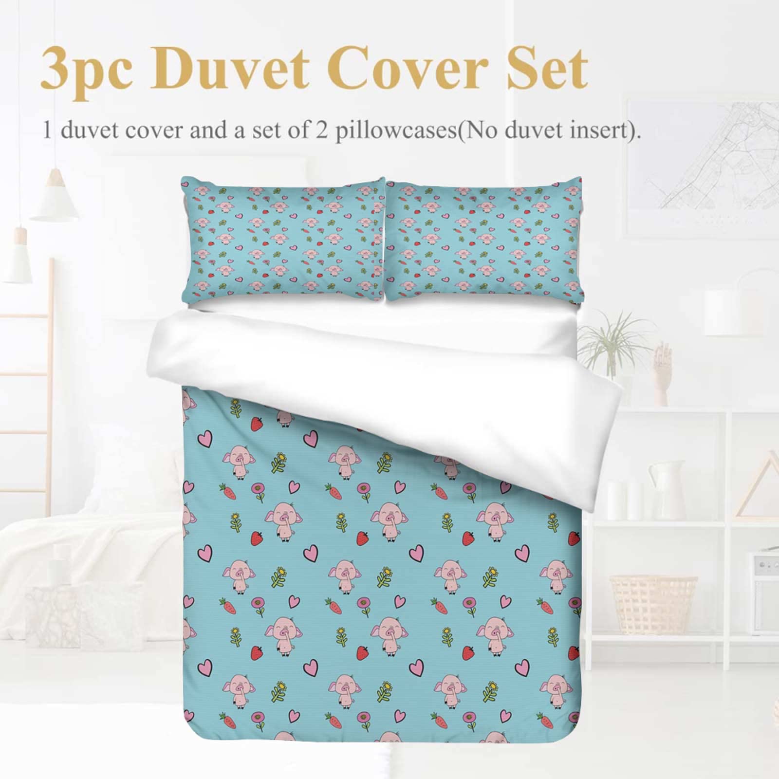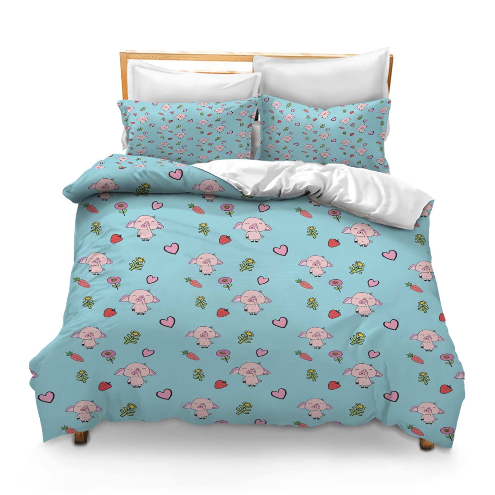 Printed Comforter Cover Set Full Piggy Seamless Scrapbooking Flowers Pattern Design Wallpaper for Kids Girls Bedding Quilt Bed Cover Sets