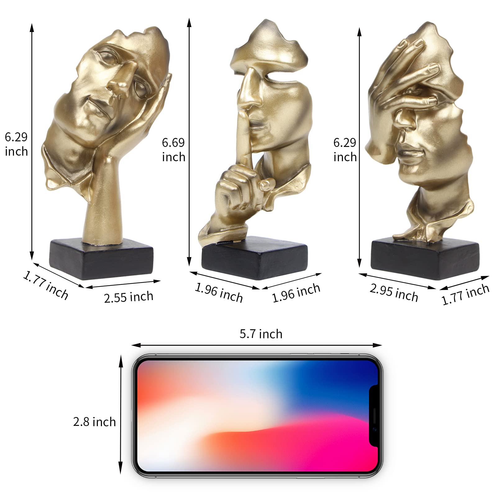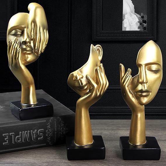 3 Pcs Thinker Statue, Silence is Gold Abstract Art Figurine