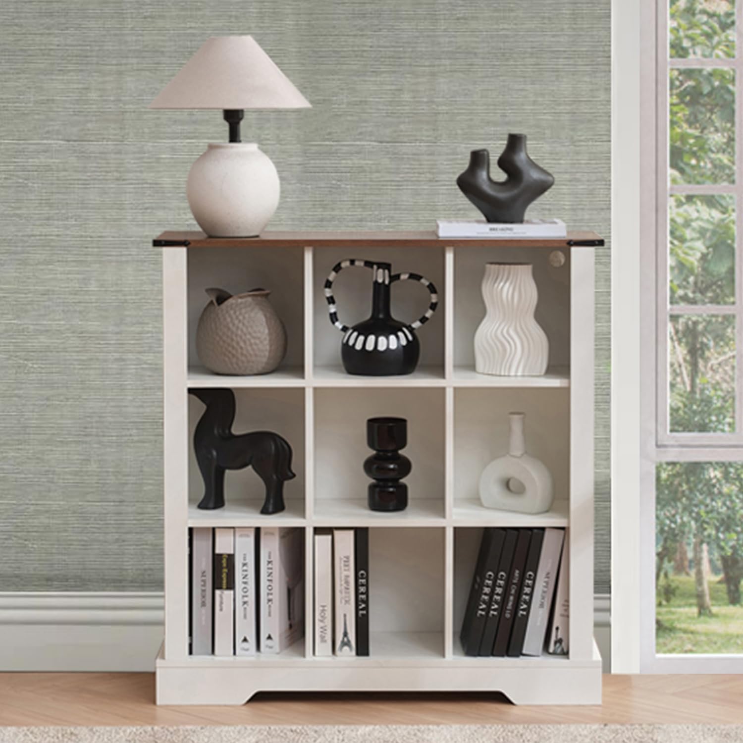 - Farmhouse Charm: This wooden open shelf bookcase showcases a classic farmhouse style, adding rustic elegance that blends beautifully with any decor