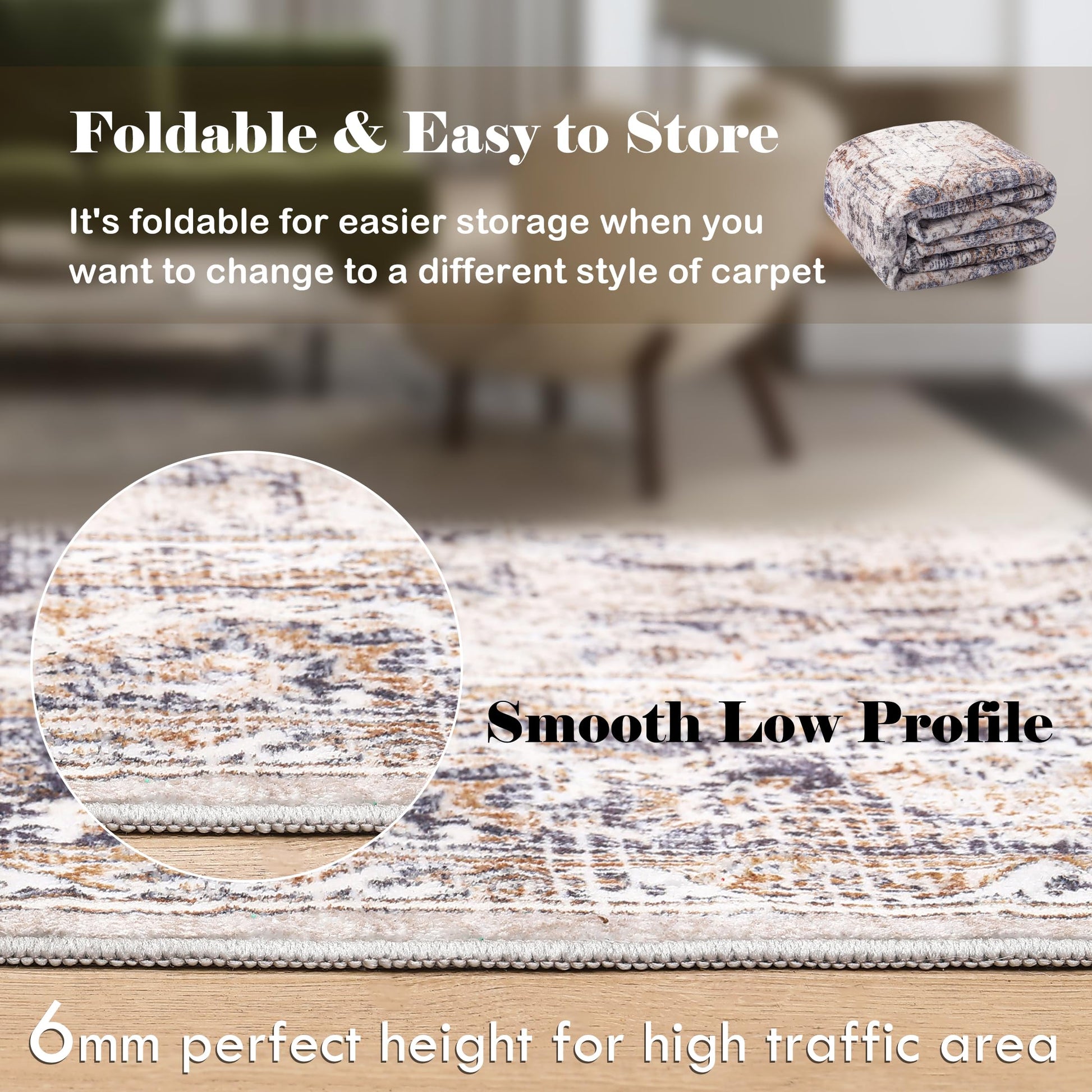 PureCozy Brown Area Rug 5x7 Living Room Rug Washable Indoor Accent Rug Vintage Low Pile Carpet Retro Distressed Throw Rug Bedroom Office Dining Room Kitchen Laundry Room