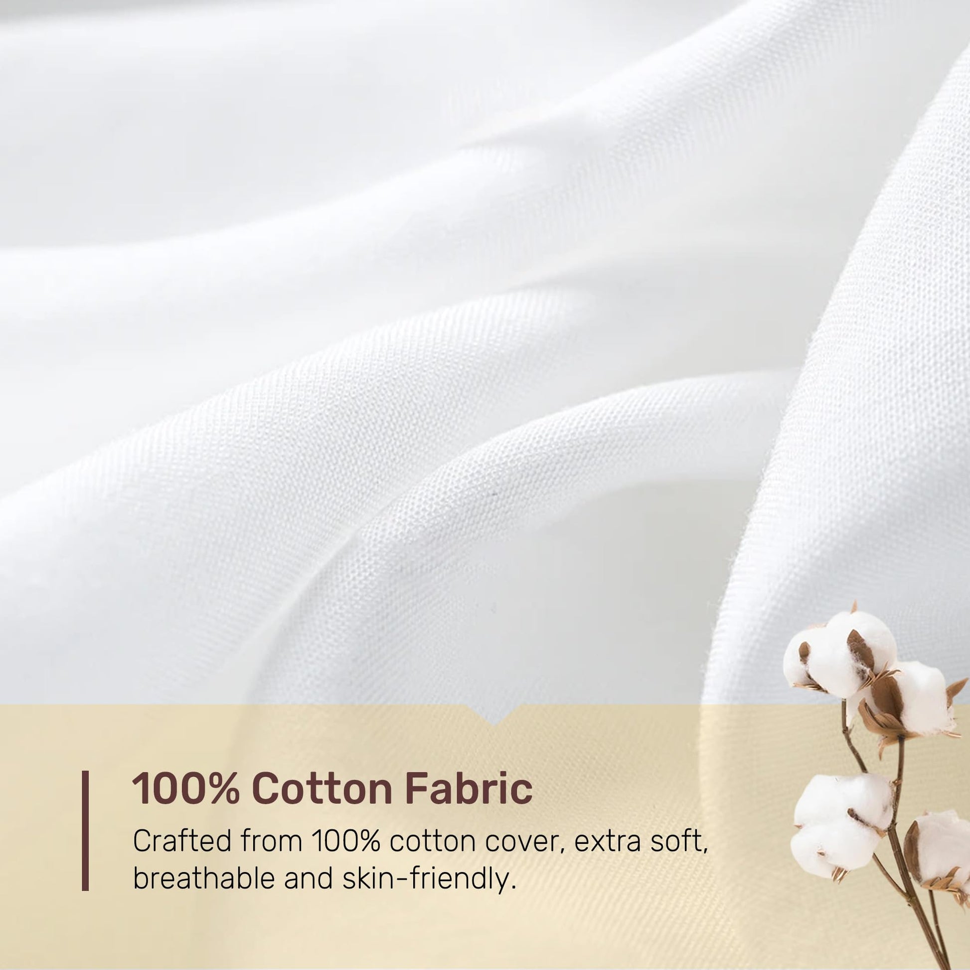 - 100% Cotton Fabric - Our down feather pillows are made of permium, skin-friendly and soft fabric, while the fabric is breathable. 100% cotton fabric with a split lining is designed to prevent down and feathers from falling out and keeping the perfect shape.