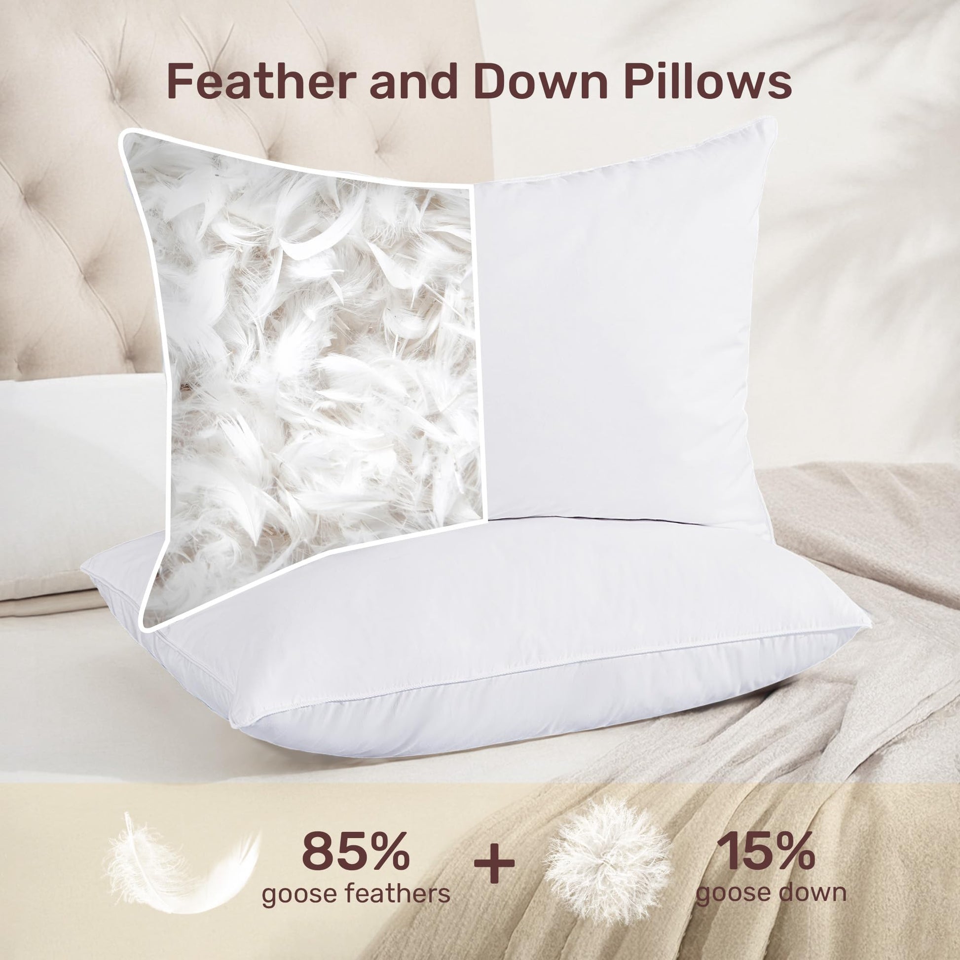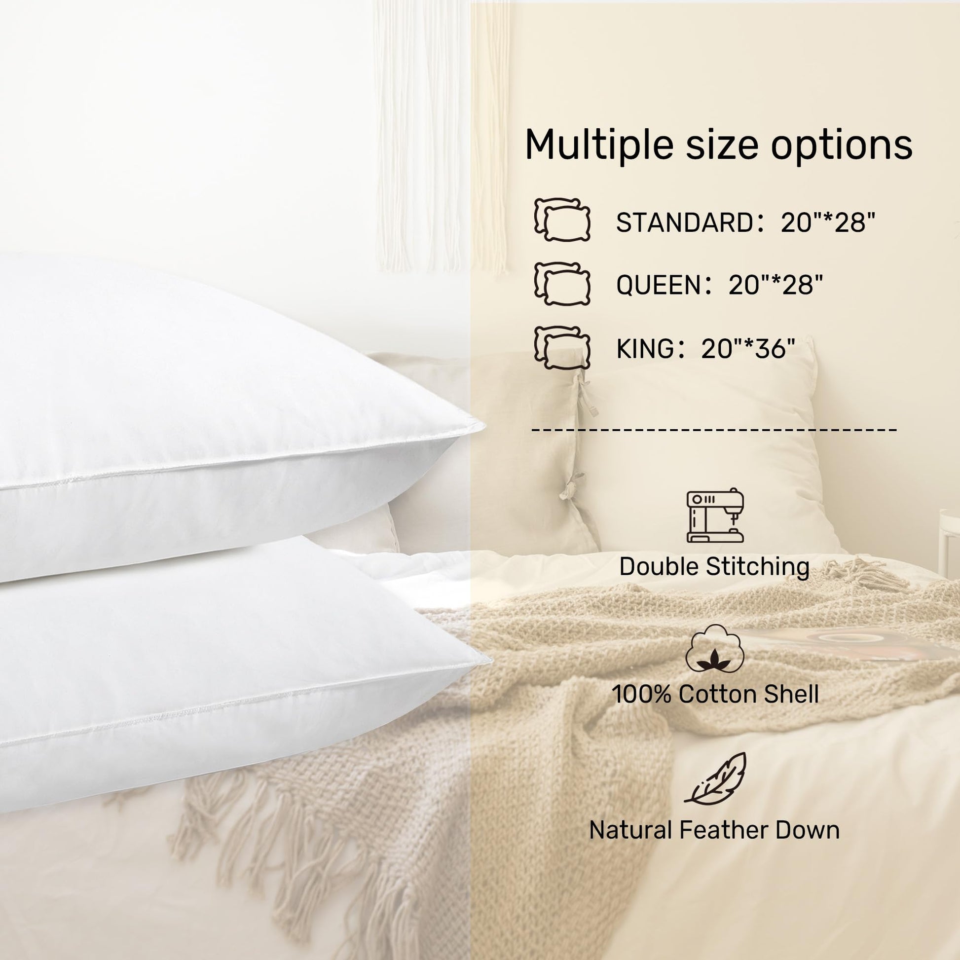 Goose Feather Down Pillows for Sleeping, Hotel Collection Pillow Standard/Queen Size Set