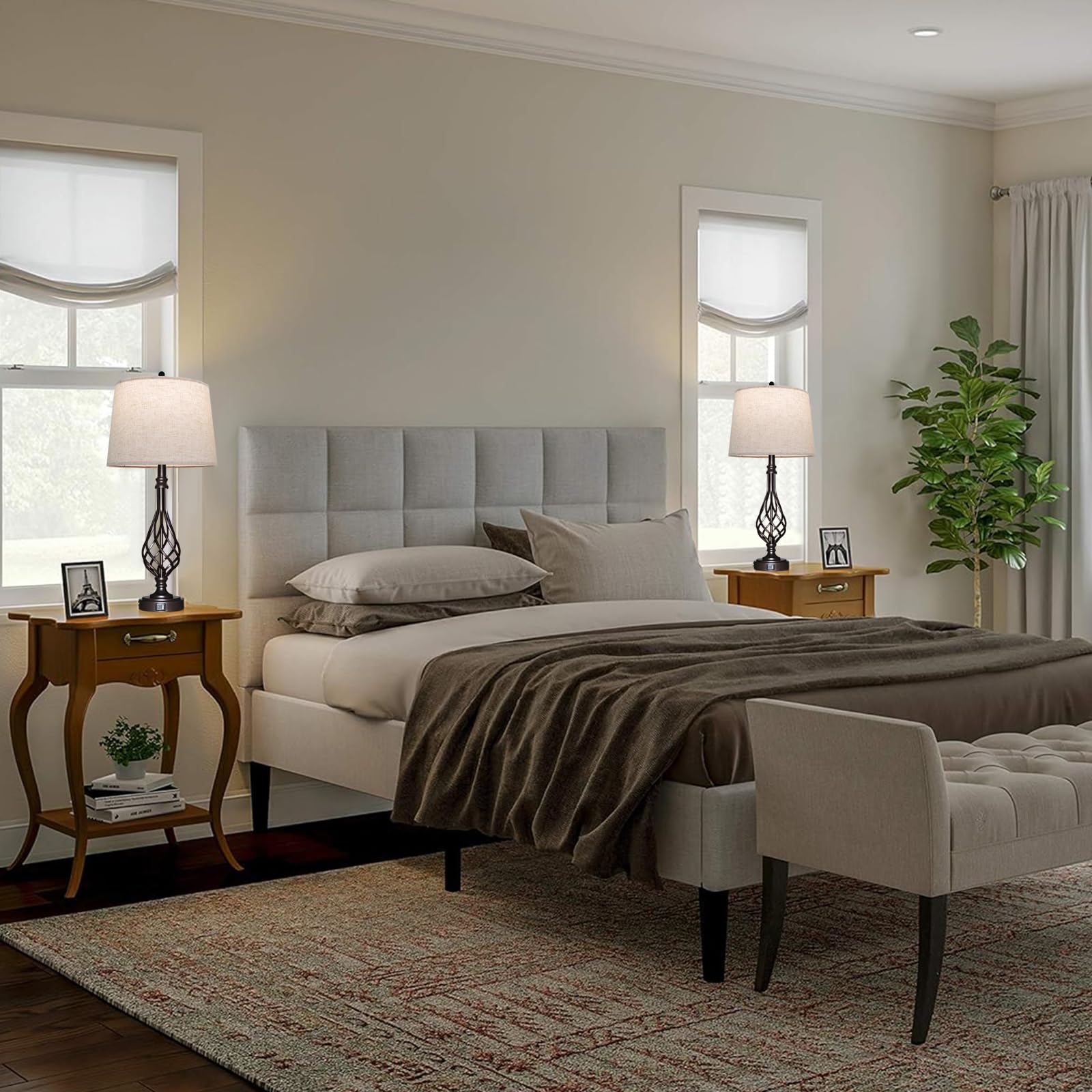 Table Lamps Living Room Lamps Set 2 with Dual USB Charging Port 3 Way Dimmable