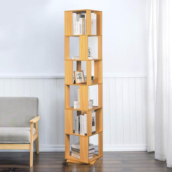 6 Tier Wooden Bookcase Corner Tall Book Shelf Modern 360° Rotating Storage Display Rack Floor