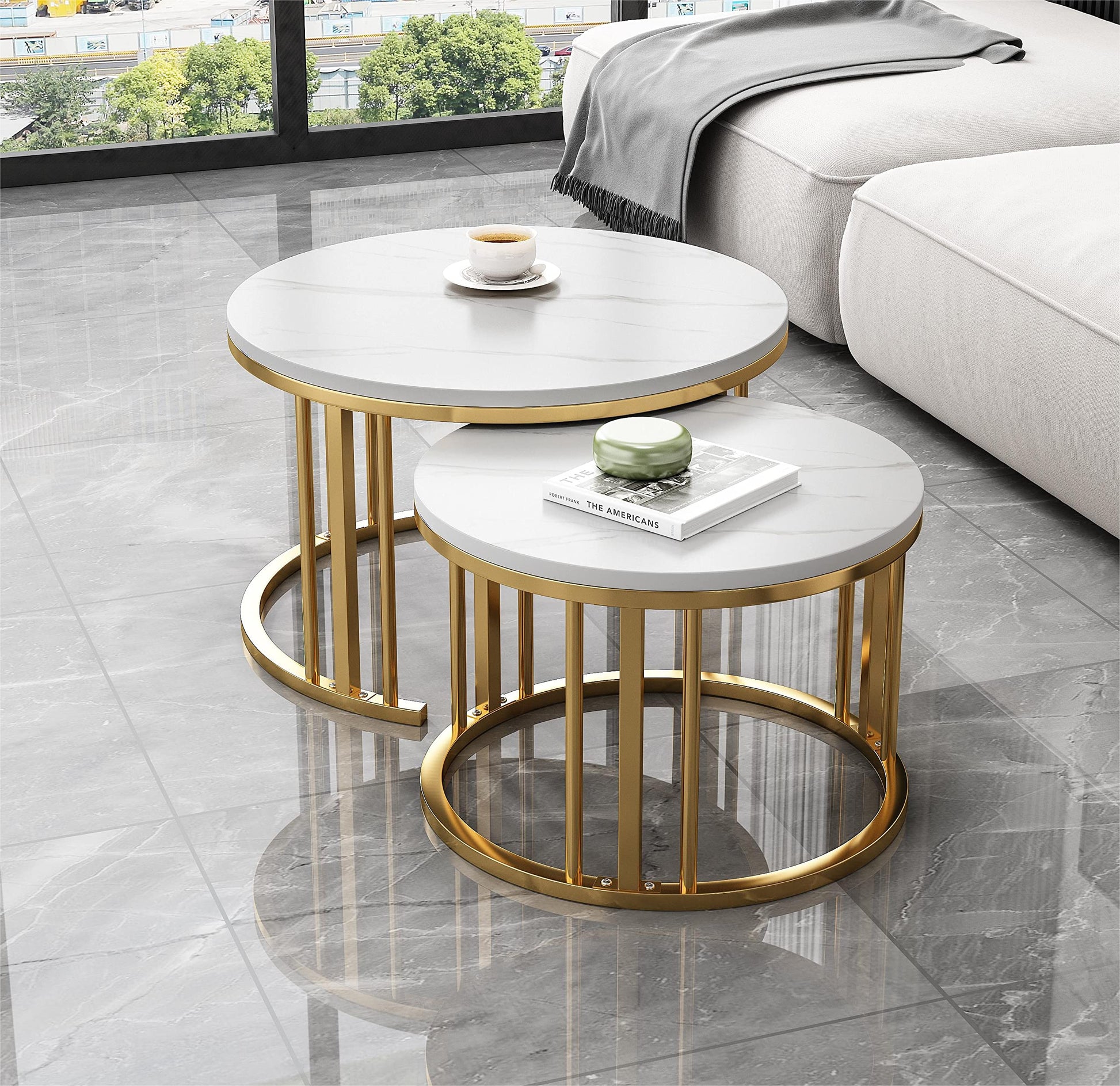 - Simple Luxurious Style: The combination of faux marble tabletop and gold open nesting design makes the coffee table visually beautiful and elegant.Fits well with your personal taste and interior decor. The simple and luxurious appearance is suitable for different scenes, and can be used as a sofa table, end table, or side table