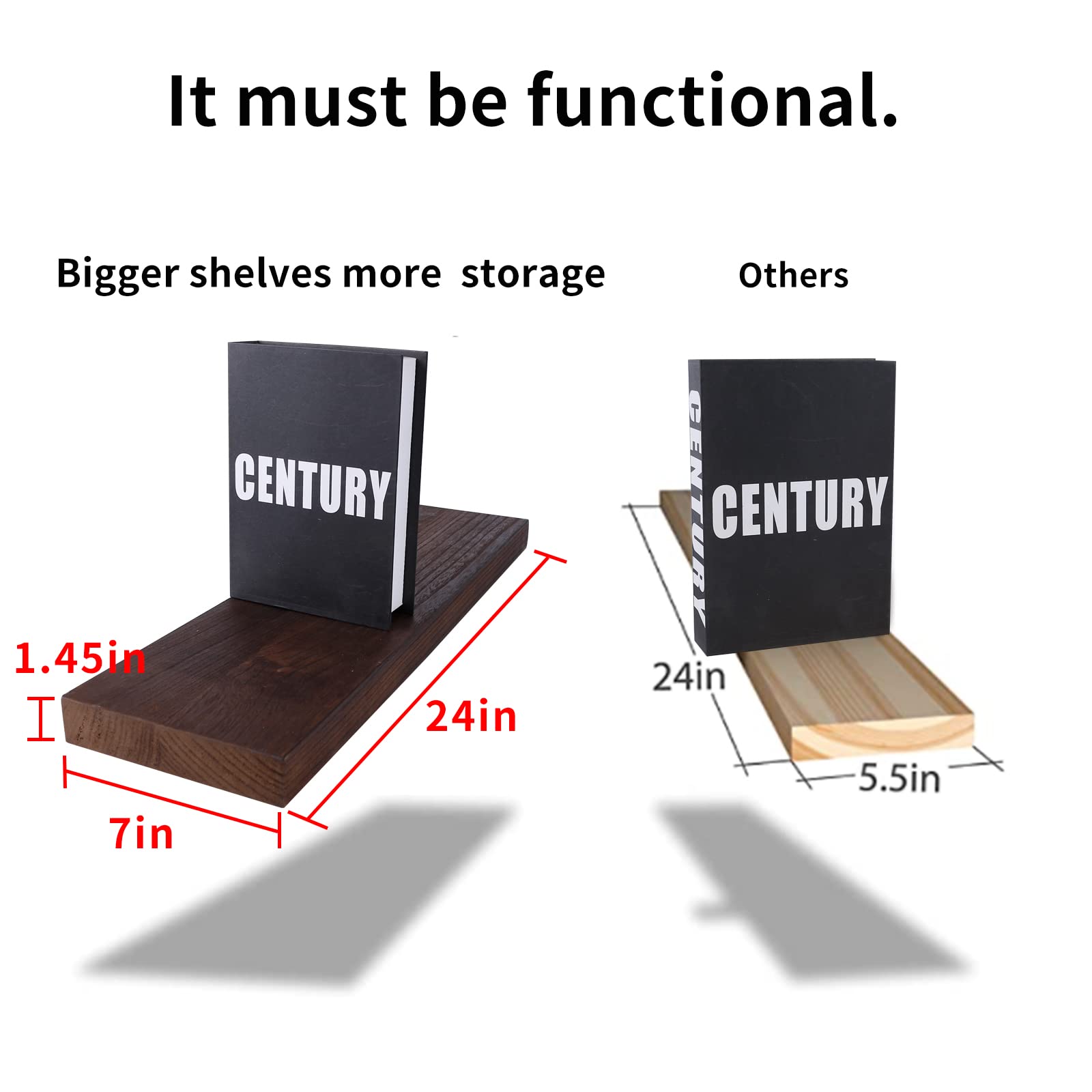 - INCREDIBLE STORAGE & DECOR — Comes with 2 pieces shelves, size:36L X 7W inches X 1.45 inch.Exhibit showpieces, memorabilia or artwork; store books & jazz up your kitchen, bathroom, bedroom and more with our real wood floating shelves!