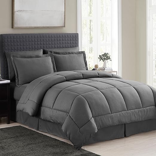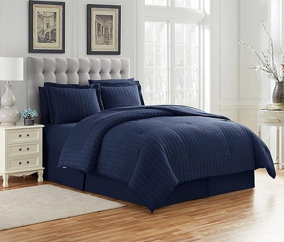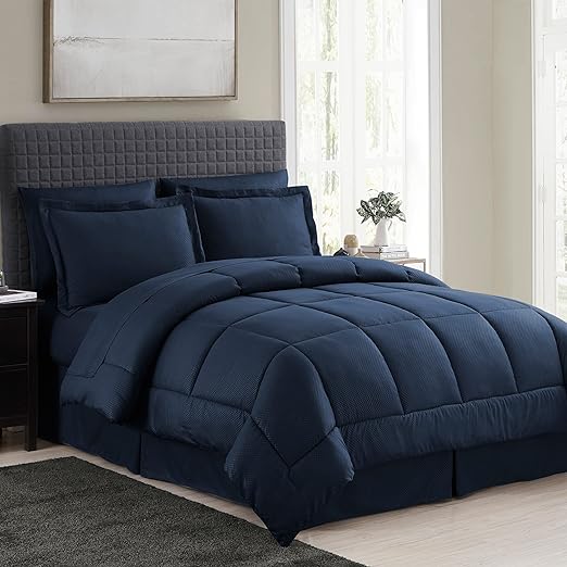 Queen Comforter Set 8 Piece Bed in a Bag with Bed Skirt