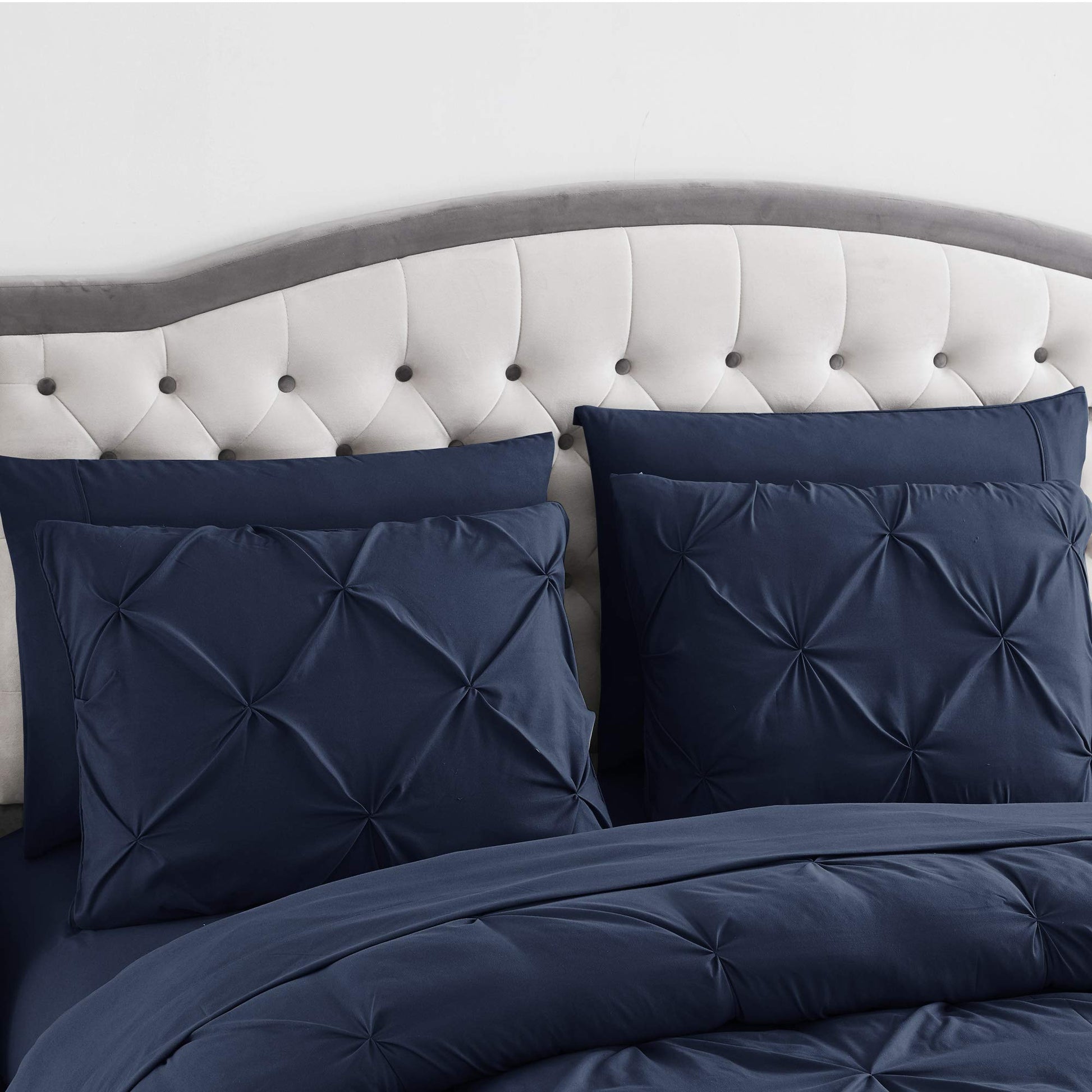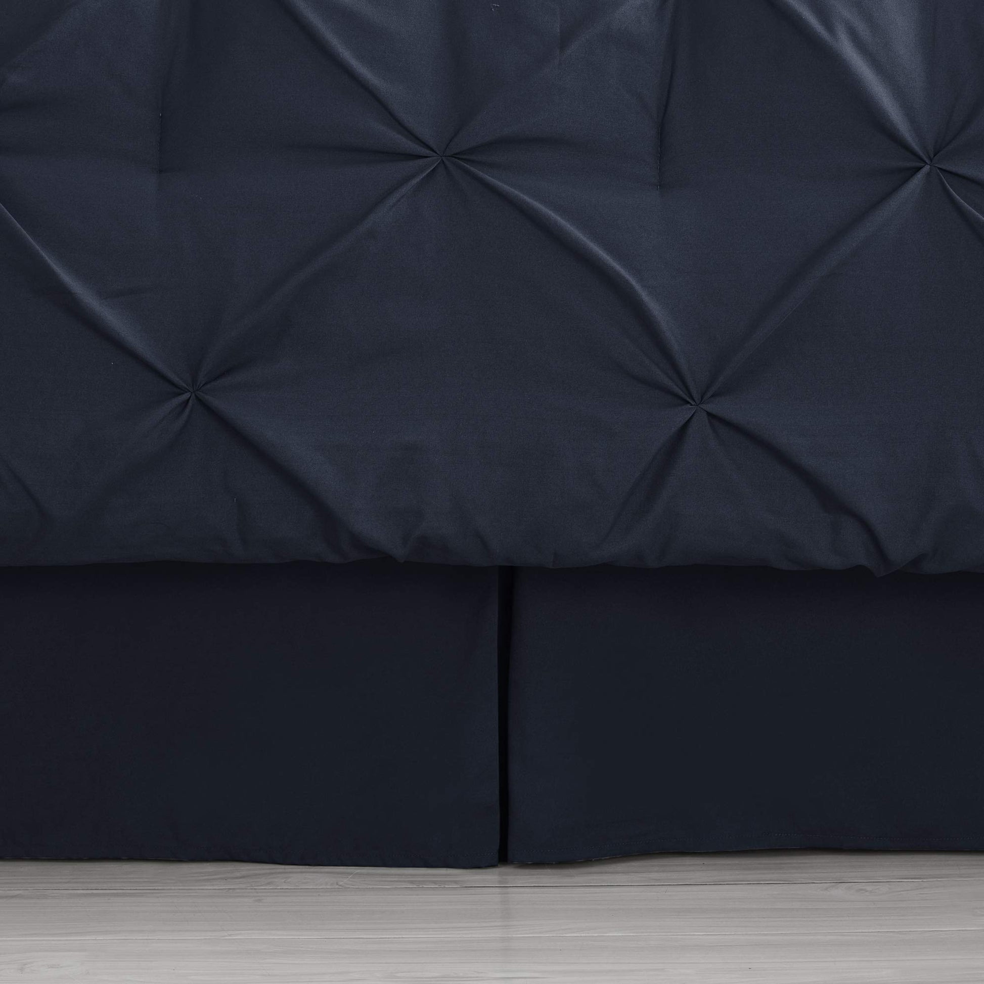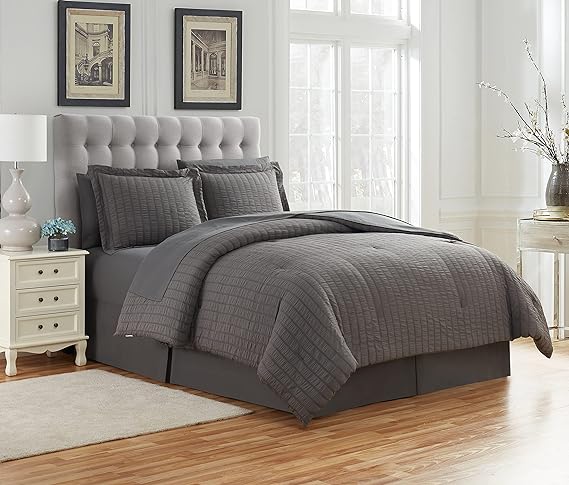 - Set includes a comforter, bed skirt, fitted sheet, flat sheet, 2 pillowcases, and 2 pillow shams Overfilled for maximum comfort