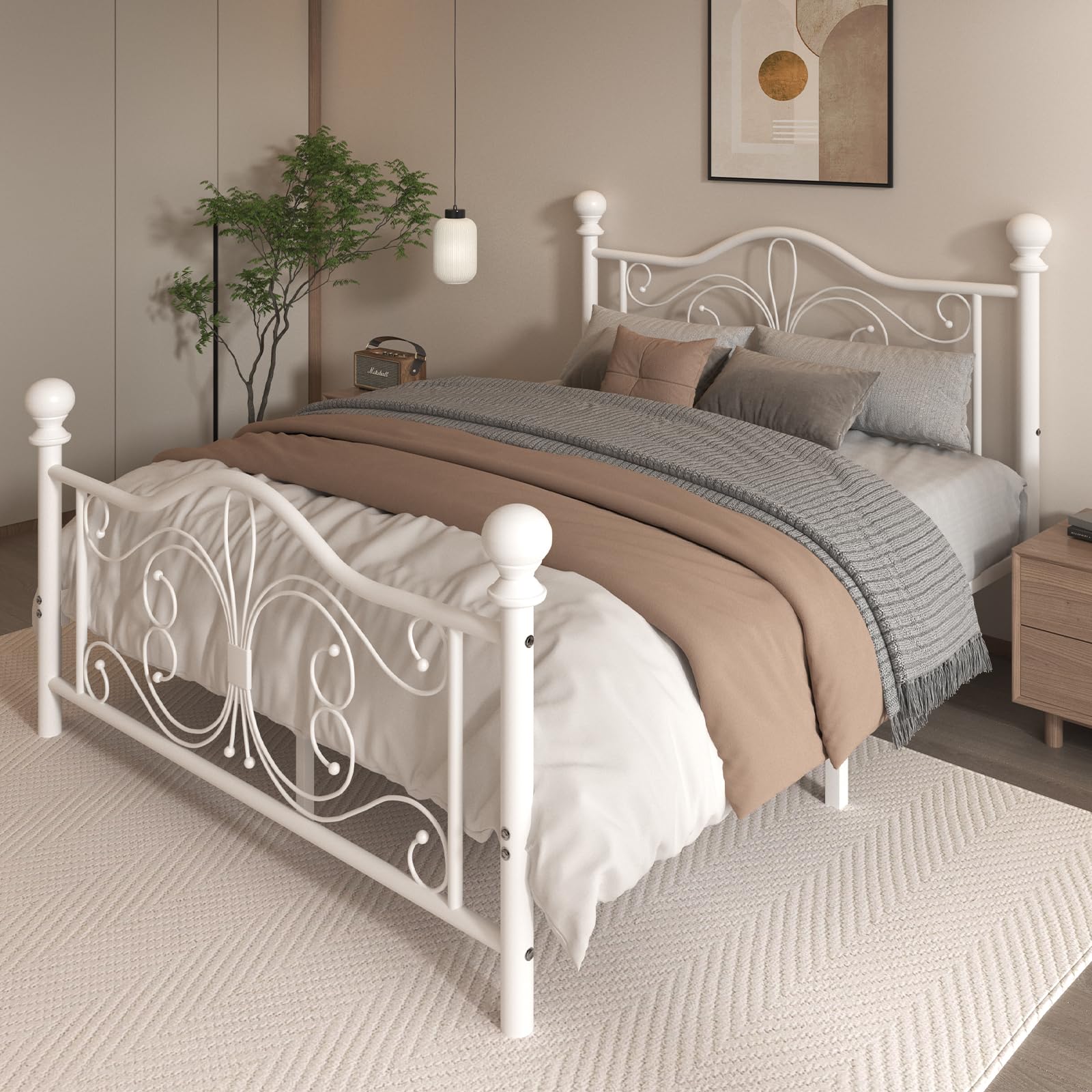 - Elegant Butterfly-Inspired Design: A beautifully curved metal headboard and footboard add a unique, romantic touch to your bedroom.