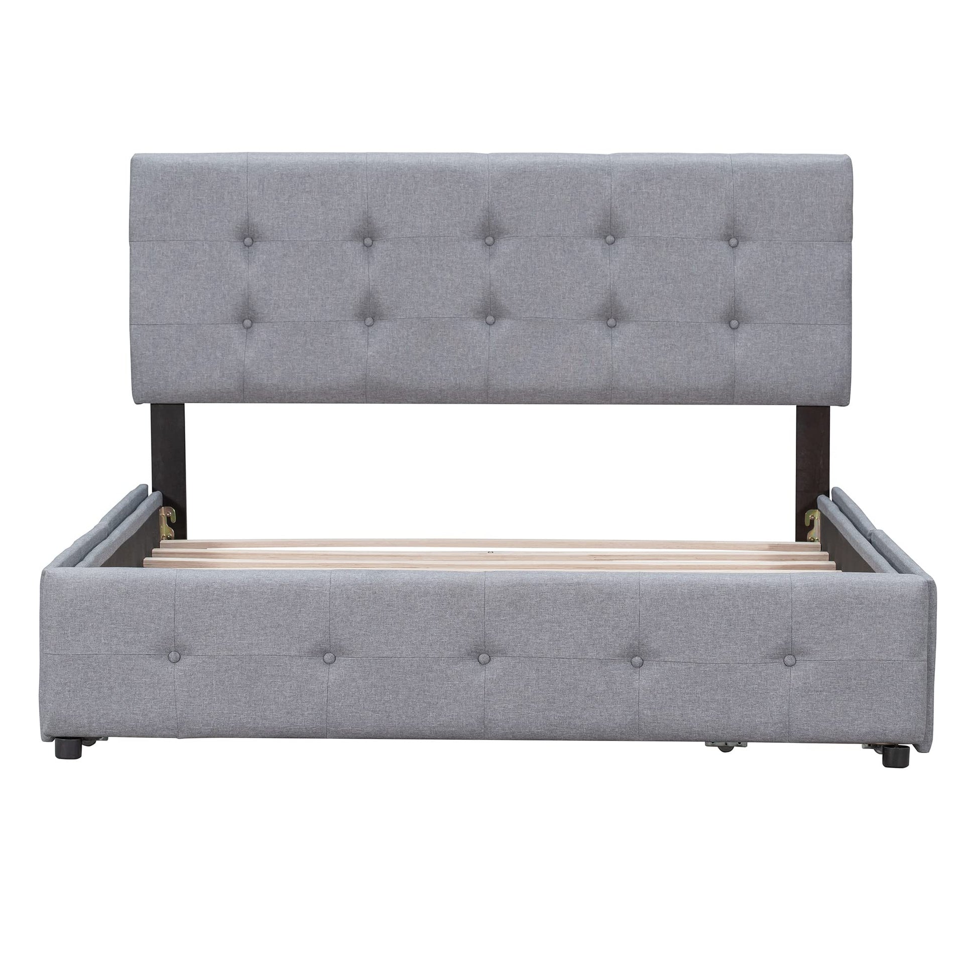 Queen Upholstered Platform Bed Frame with Classic Headboard and 4 Drawers, No Box