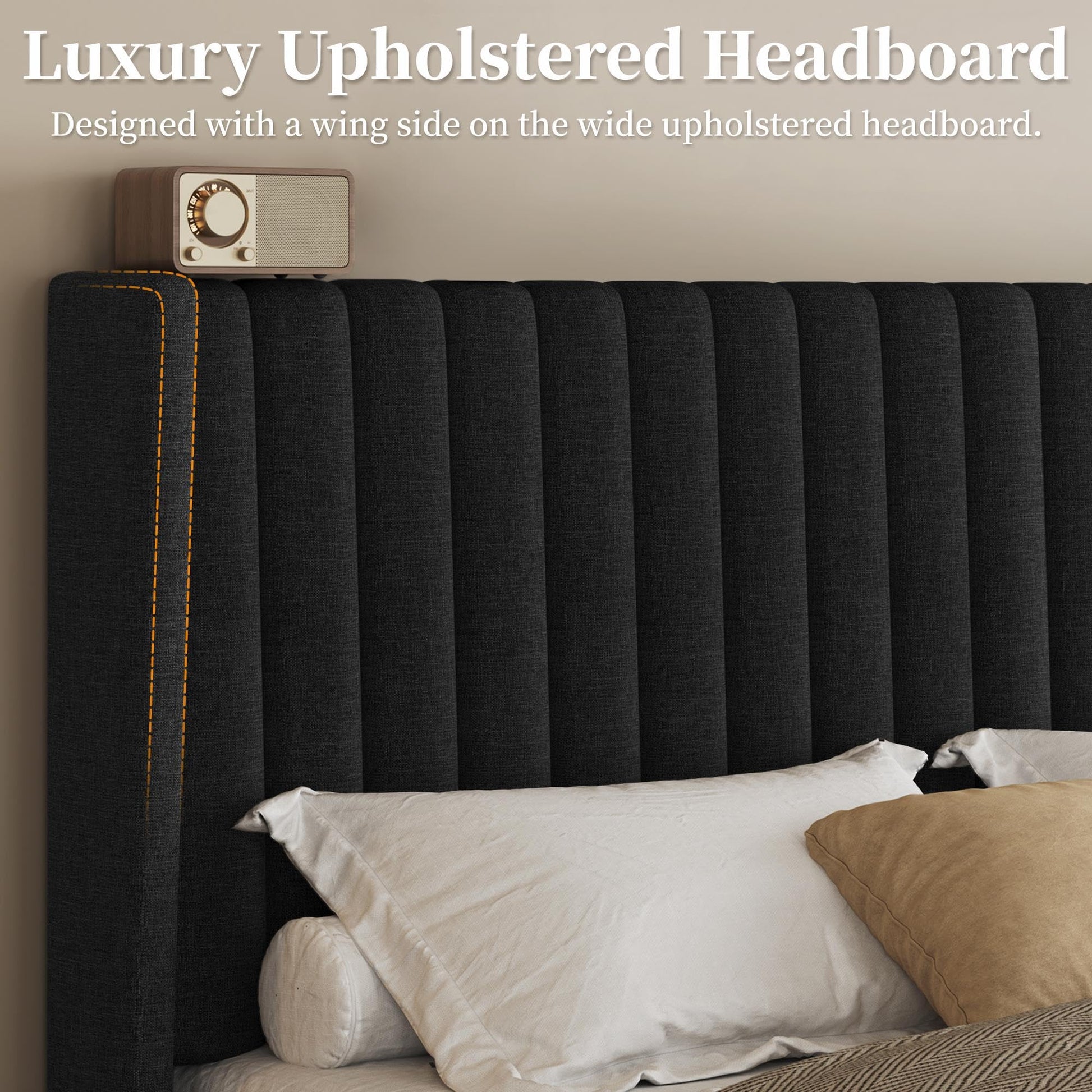 Queen Upholstered Platform Bed Frame with Fabric Headboard - Black