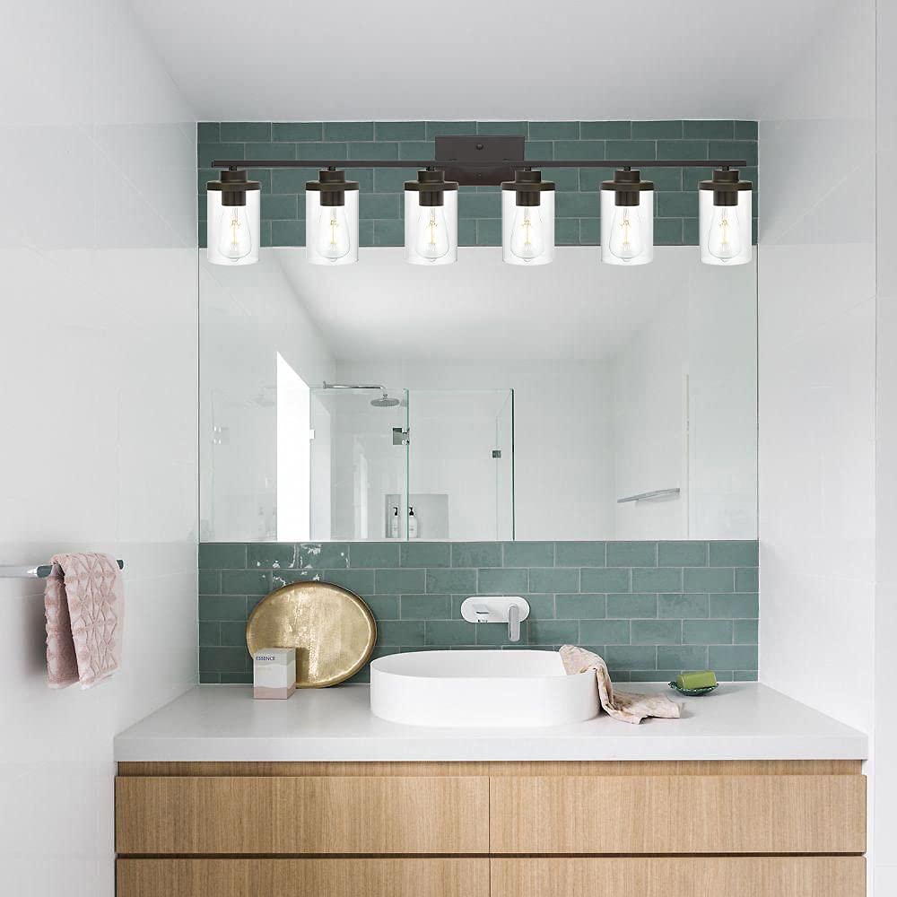 Farmhouse Vanity Lighting Fixtures Oil Rubbed Bronze 6 Light with Glass Shade Bathroom Light
