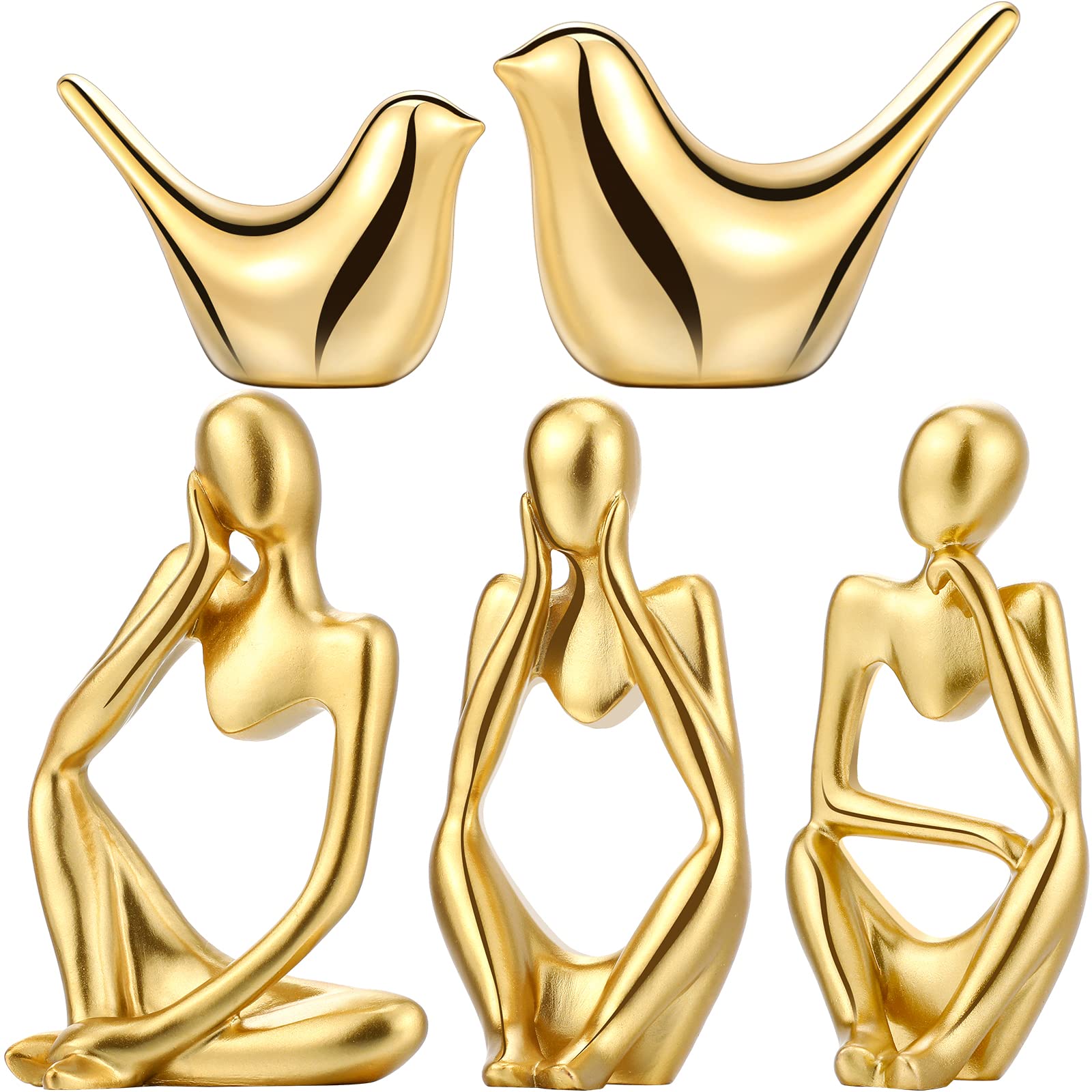 - Sufficient quantity: there are 3 pieces of decorative thinker figurines, with different interesting postures, namely resting chin on left hand, resting chin on right hand, and holding head, and 2 pieces of gold bird statues, enough quantity can meet your different decoration demands, allowing you to decorate and adding artistic sense to your home or parties in seconds