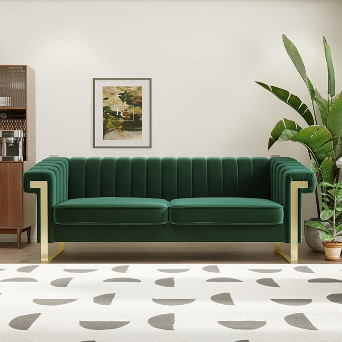 - The design concept of Mid-Century Modern style focuses on the balance between simplicity and functionality, and this mid century modern couch with its waterfall-style vertical stripes, smooth arc design and modern gold metal legs achieves the dual goals of enhancing visual beauty and comfort.