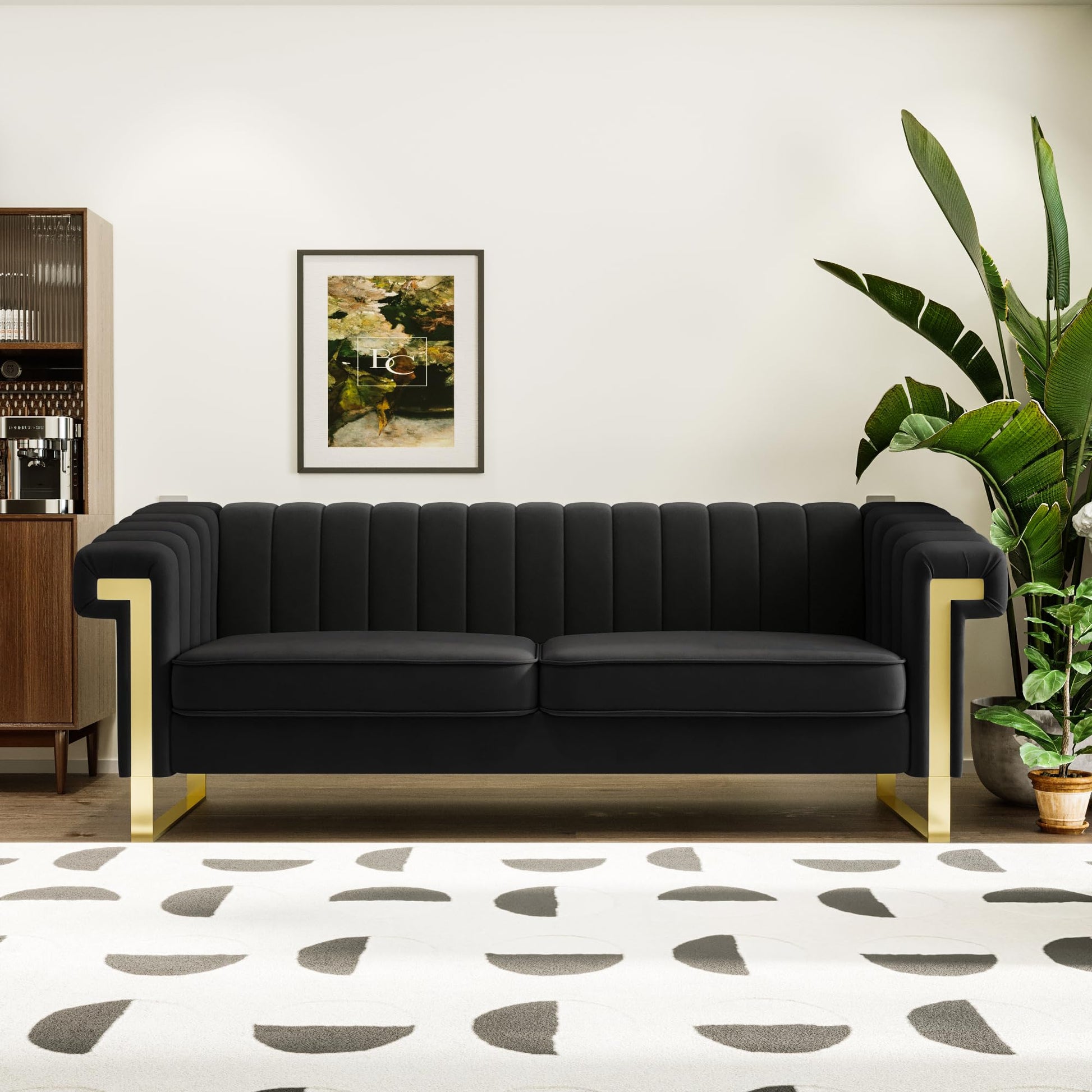 84" Velvet Couch Black Sofa Medieval Modern Luxury Sofa Comfortable Couches