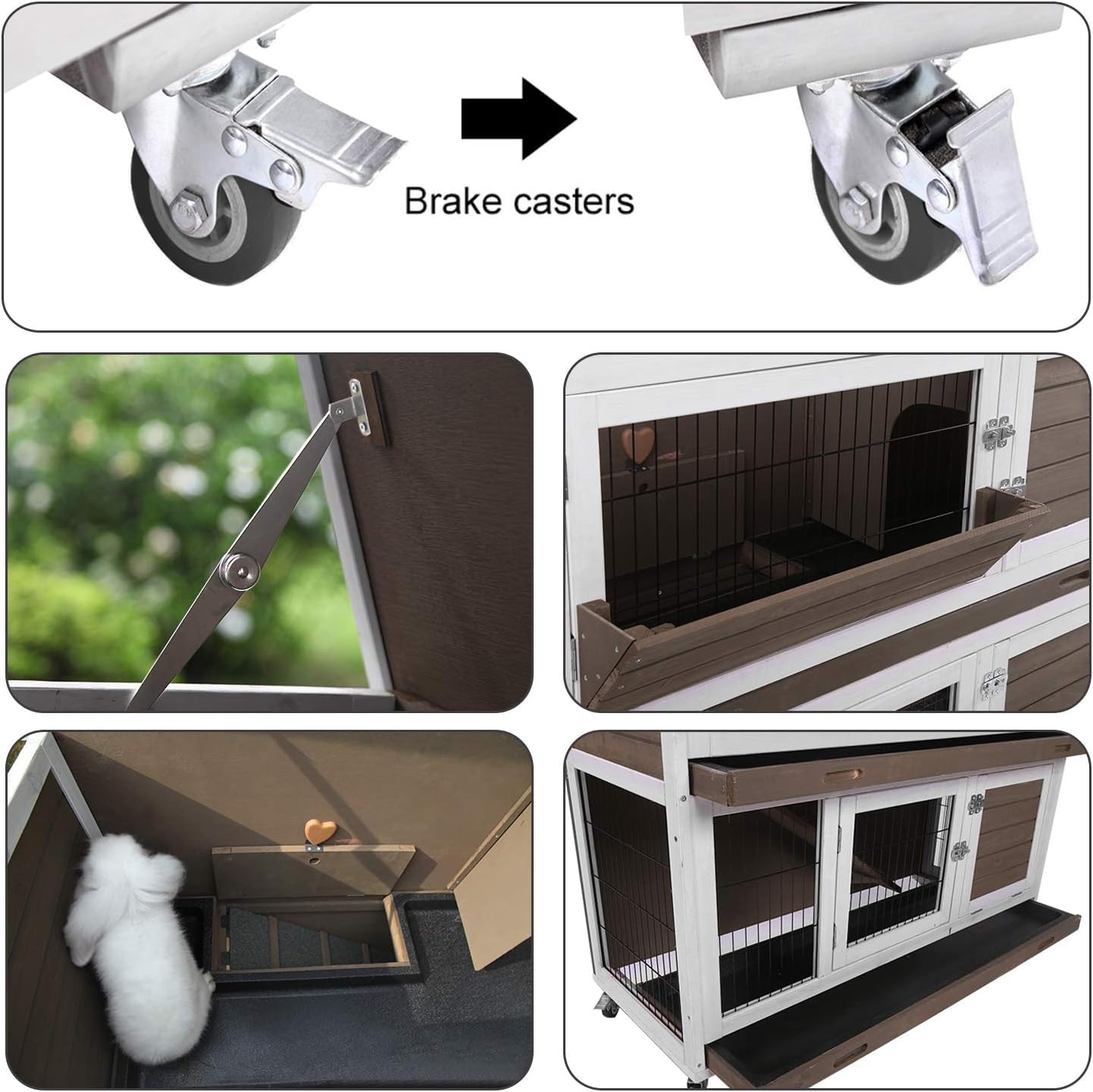 - Rabbit cage on 4 wheels easily to move 2 of them are with brakes to fix well and keep safe. The perfect compliment to your backyard or indoors.