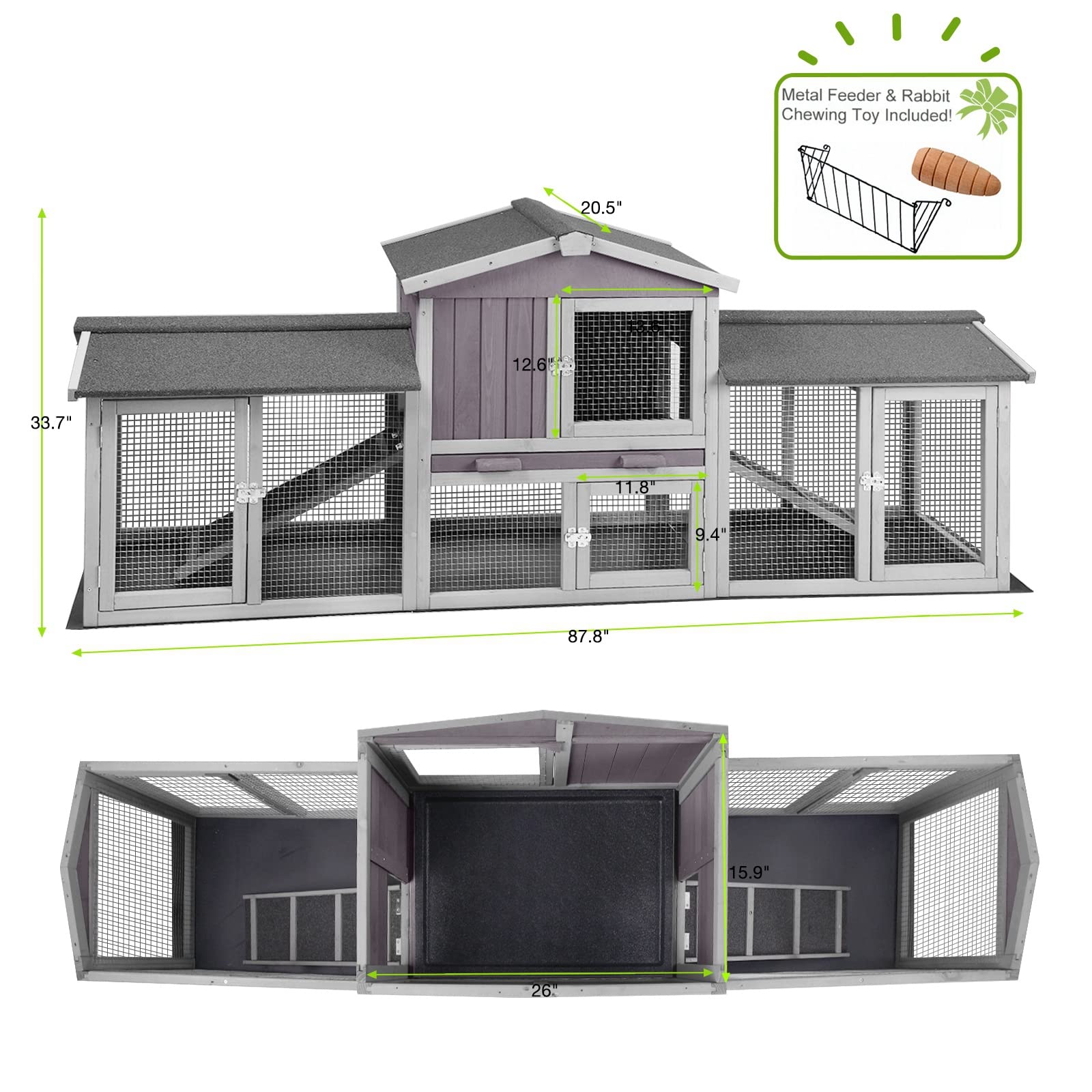 Rabbit Hutch Indoor Outdoor Bunny Cage with Large Run,Chicken Coop