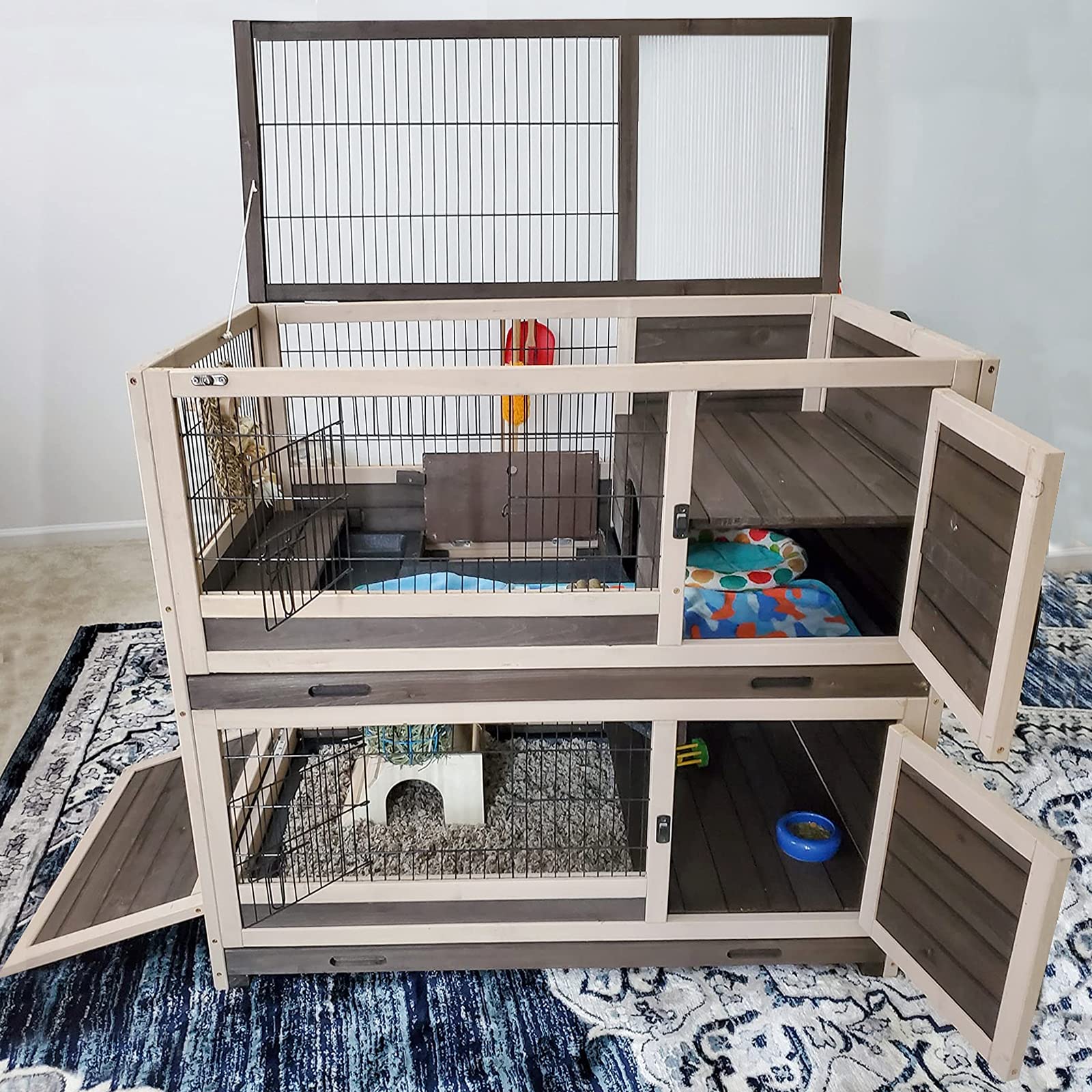 Rabbit Hutch Large Bunny House Two Story with Trap Door