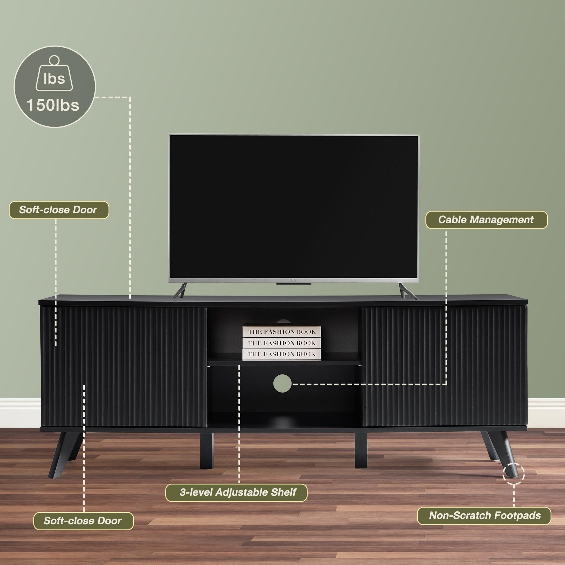 Fluted TV Stand for TVs up to 65'', Modern Mid Century Entertainment Center