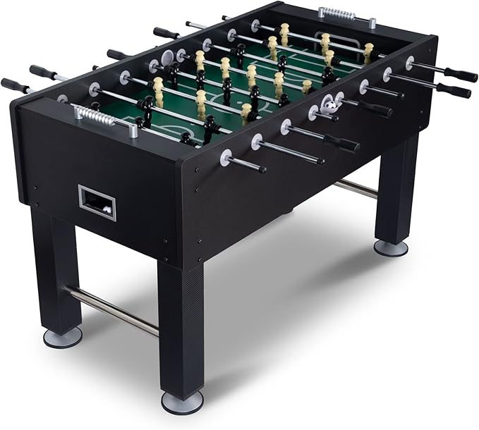 Measuring 55 inches in length, this full-size foosball table offers a realistic playing experience that mirrors arcade and bar-style game tables. It comes with detailed player figures and a smooth green playing field designed to simulate real soccer action. The manual scoring system on each end makes it easy to keep track of goals during heated matches.