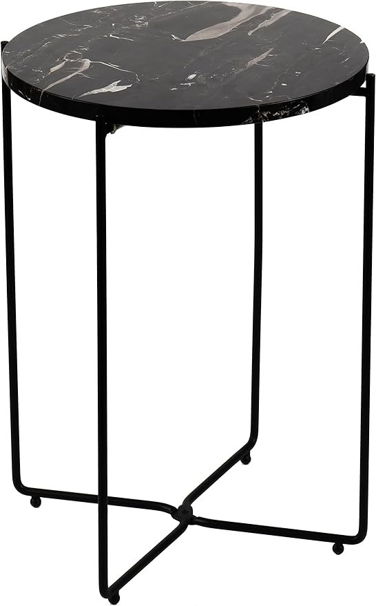 Real Marble Metal Round Side End Table with Pure Marble Top Modern Lightweiht