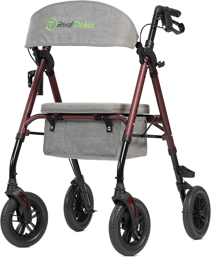 All-Terrain Rollator with Padded Seat for Seniors, Outdoor Off Road Rolling Walker