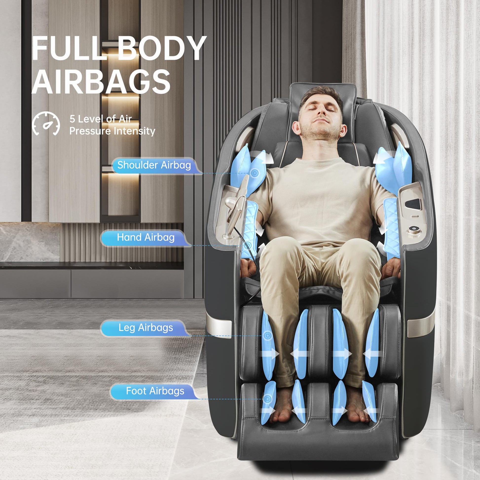 - Full Body Airbags Whole body airbags that compress theshoulders, arms, feet and hips eases the tension and discomfort across the entirebody