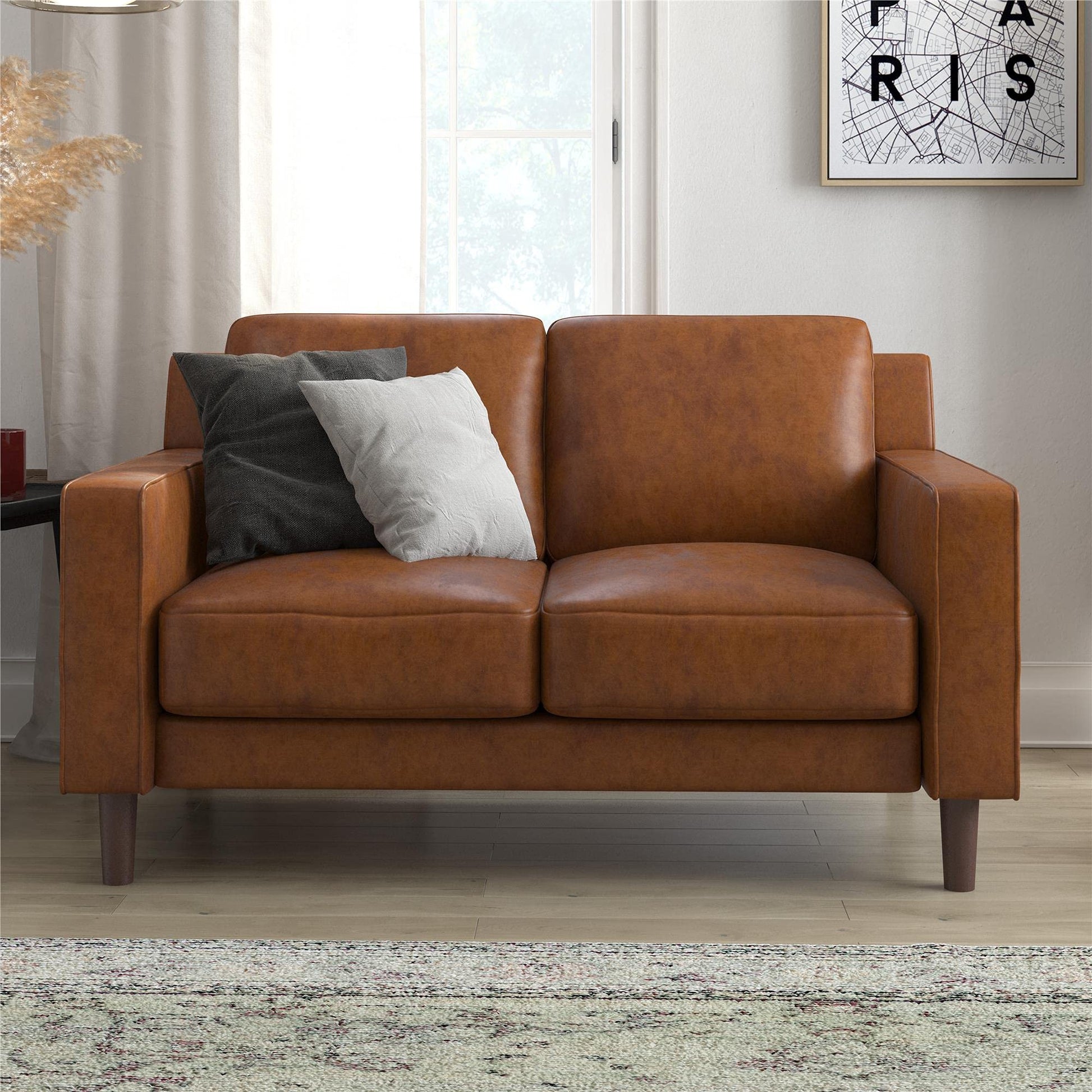 Brienne Loveseat 2 Seater Sofa, Camel Faux Leather