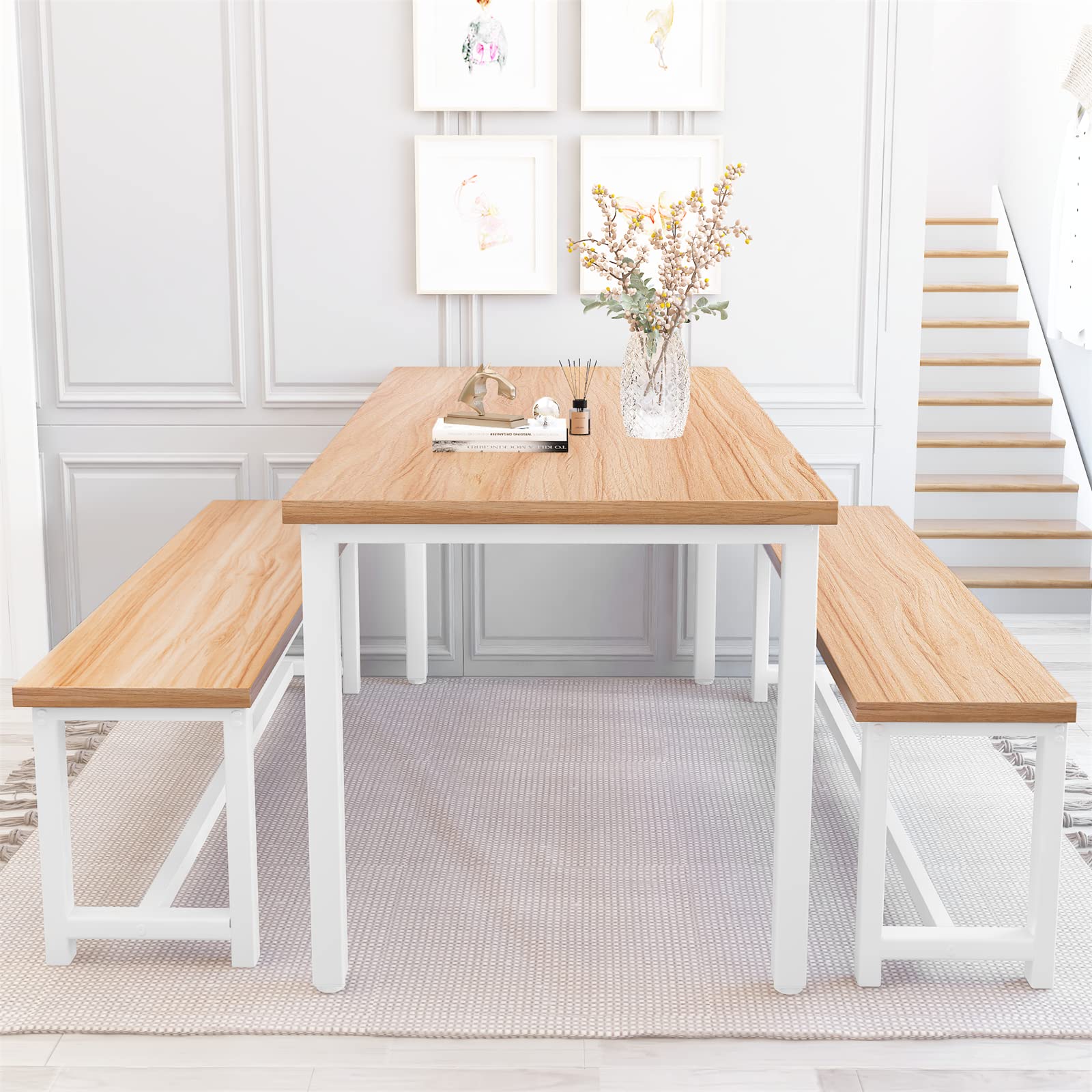 - Kitchen Table and Chairs Set 3 Piece Dinette Table Set : Designed with easy and fast assembly in mind, each 4 person table set comes conveniently flat packed with easy to follow instructions and all necessary tools included. 3 Piece Dining Table Set Table/ Bench Dimensions: 47.2x28.7x29.5 inches, Benches of 41.3x11.8x17.7 inches.