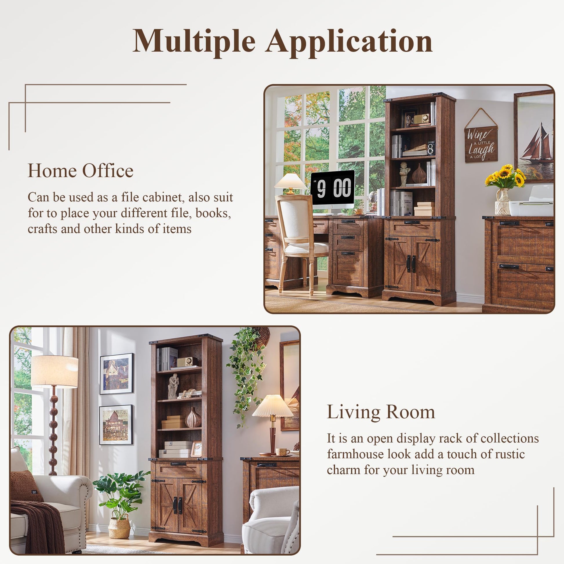 - Multi-Use: Office bookshelf designed like built-in cabinetry with handsome details that make it suitable for various room sizes. Together with functionality, it serves well as a bookshelf, pantry cabinet or display shelf in study room, kitchen and living room.