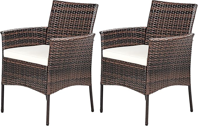 - Thick Seat Cushion Included: The comfortable seat cushions of these patio dining chairs are padded with soft sponge, which provides a cozy touch for extended sitting. And you can remove the cushions for different needs. Furthermore, the cushion covers with zippers are convenient to remove and clean after a long time use.