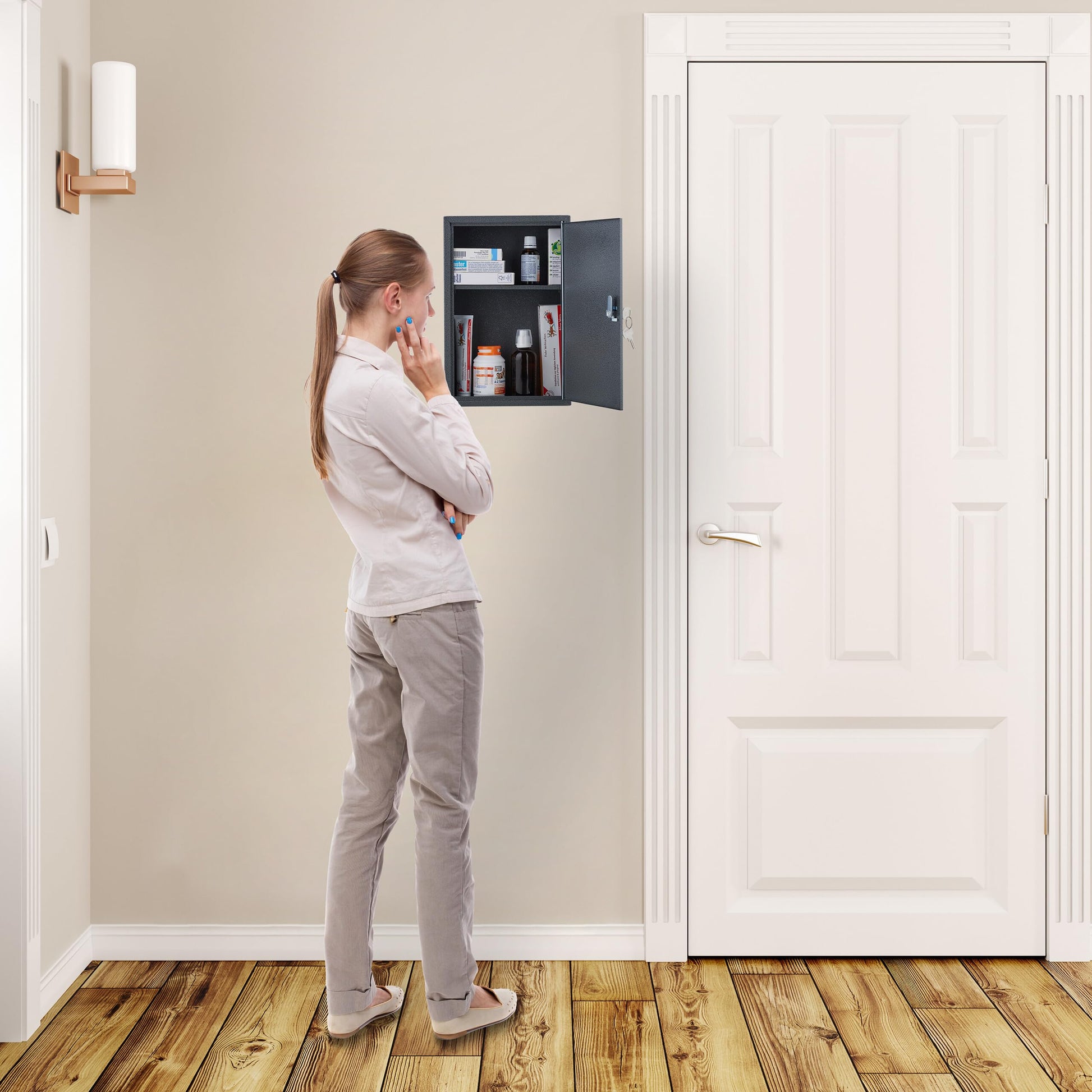 - Safe: Medicine cupboard can be locked - Children cannot get hold of medicines - With spare key